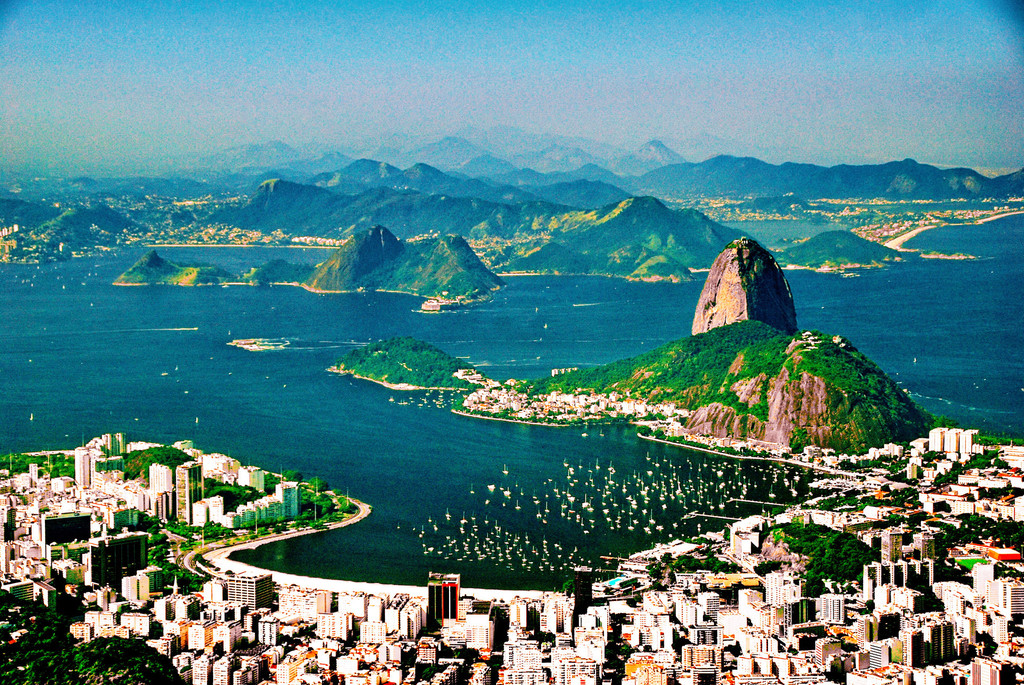 面包山:面包山主体、背景的群山、大海、弯曲的海岸线、游艇、楼宇,所有这些元素,有机组合、排列、配制,展示出里约热内卢的热力: