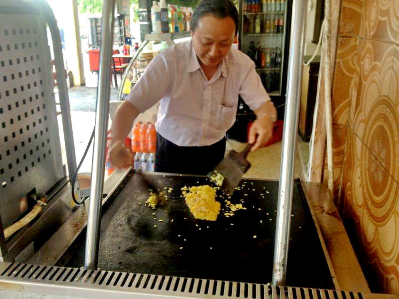 旅行途中,在路边大排档自己炒蛋炒饭: