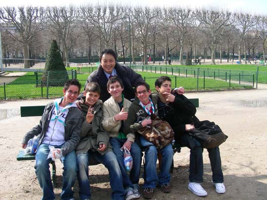 2007年3月,在巴黎香榭丽大道与帅哥们合影