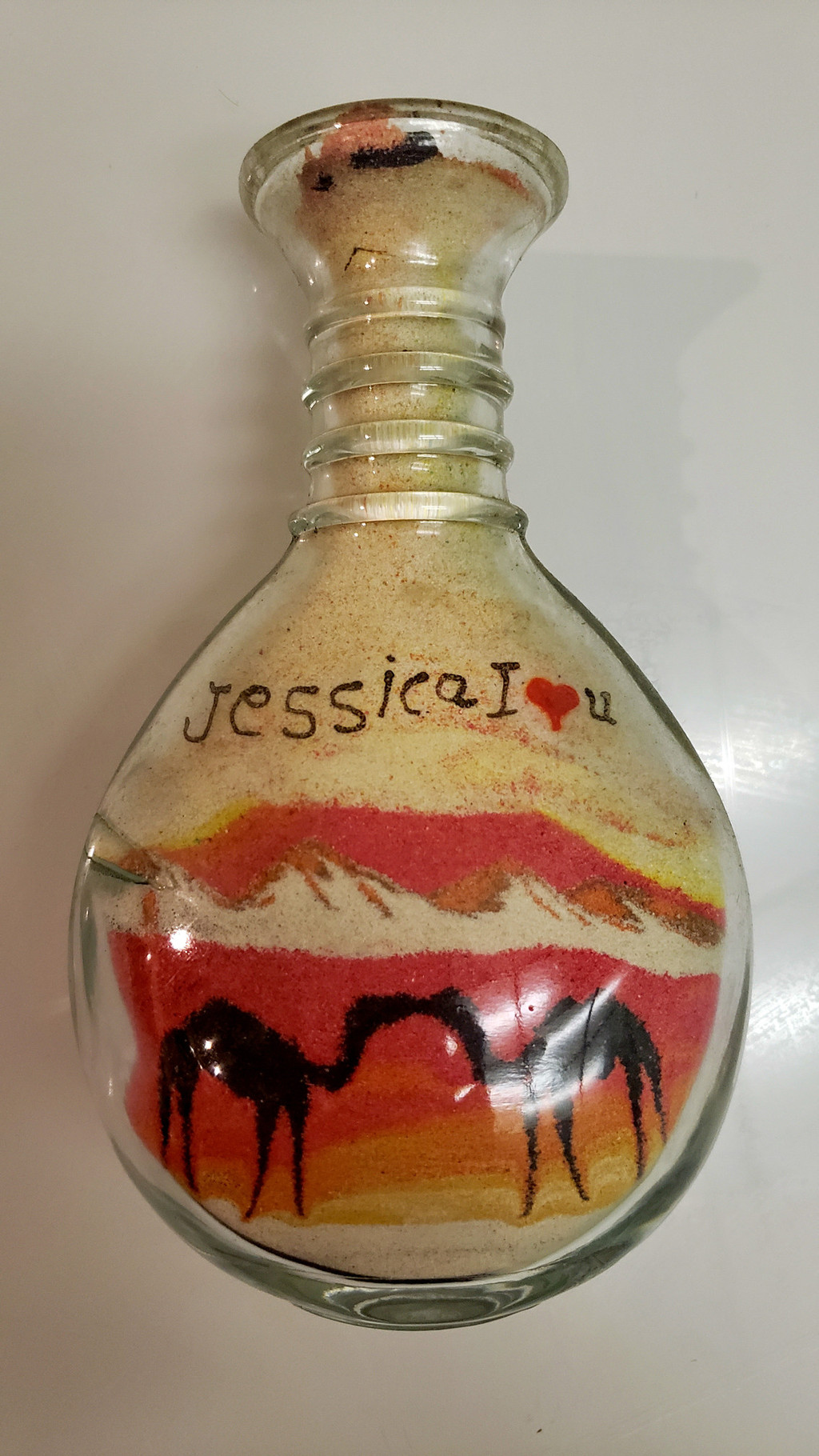 迪拜个性化沙瓶。2013年11月,摄于迪拜