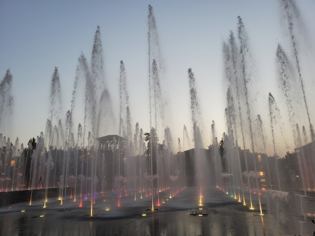 網友們都說:來康巴什新區,一定要去看看烏闌木倫河的音樂噴泉。問了酒店前台,晚上8點開始,距離酒店大約有2.4公里,我們7點出發,去回都是用走的,順便看看康巴什新區的夜景,很美麗,快很累,這一整天走了2萬8千多步。