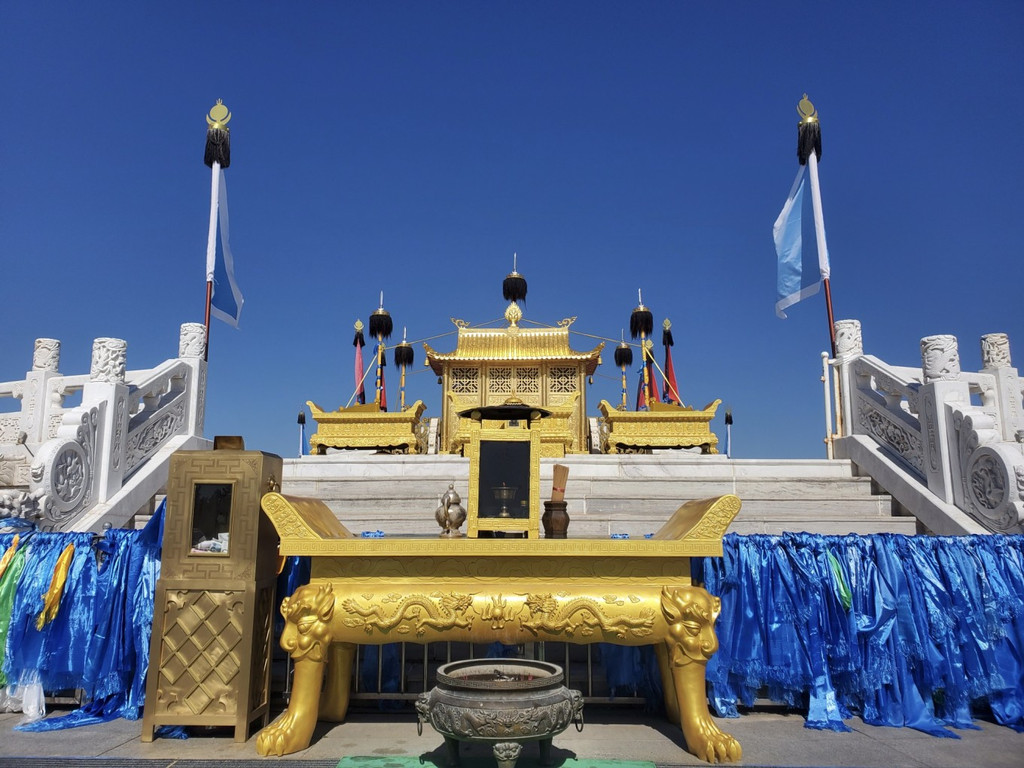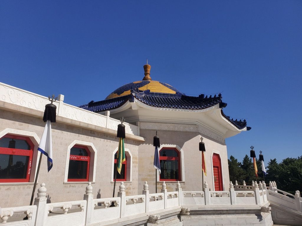 50分鐘的車程很快就到達了,成吉思汗陵很大,展示了成吉思汗用過的馬鞍、弓箭、蒙古包、家族成員,展館內不讓拍照,廣場很空曠,晒的要冒油了。