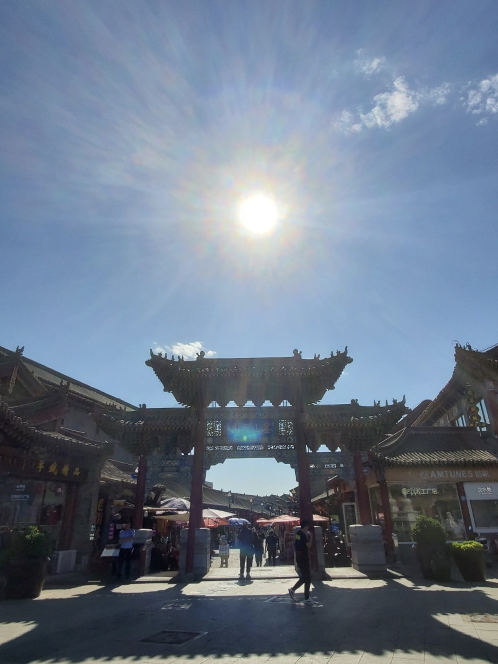 在大召寺附近,是條具有明清建築風格的古街。其與建於明萬歷年間的大召,門前西側有一條橫街,立了牌樓,名為塞上老街。現在已成了一條小商品街,臨近大召寺廣場,很多年輕人在附近穿著藏服拍照。