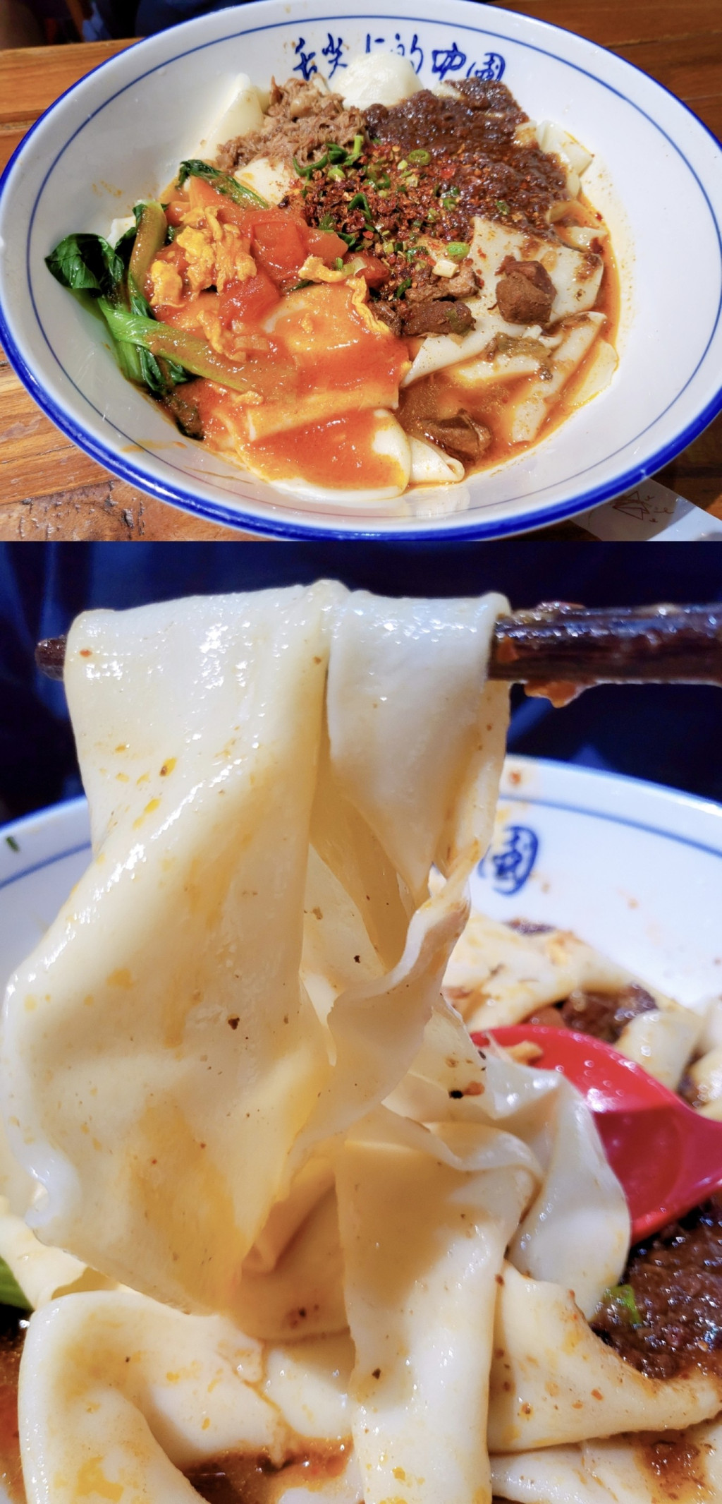 街口有一家青海牛肉麵店,進去點了一份牛肉湯麵和一份牛肉炒麵,不敢恭維,最後在街口餅店買了兩個餅回酒店解決晚餐了。