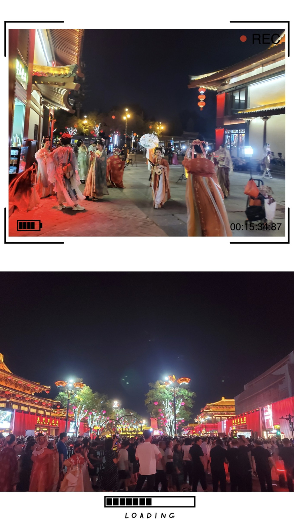 音樂噴泉的演出結束後,人們開始向大唐不夜城移動,好人哦!
