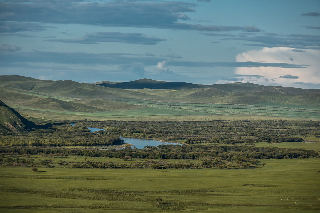 今年的暑期较往年要长一些,所以初秋的内蒙古大草原依旧是这种青绿色的大场景,不过仔细观察会发现在青绿色中夹杂着初秋的泛黄,所以对于内蒙古来说已经属于“青黄不接”的季节了。草原湿地景观是内蒙古最美风光之一,它地处呼伦贝尔黑山头小镇上。