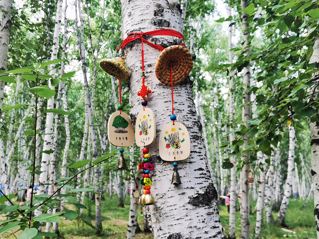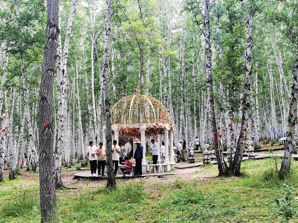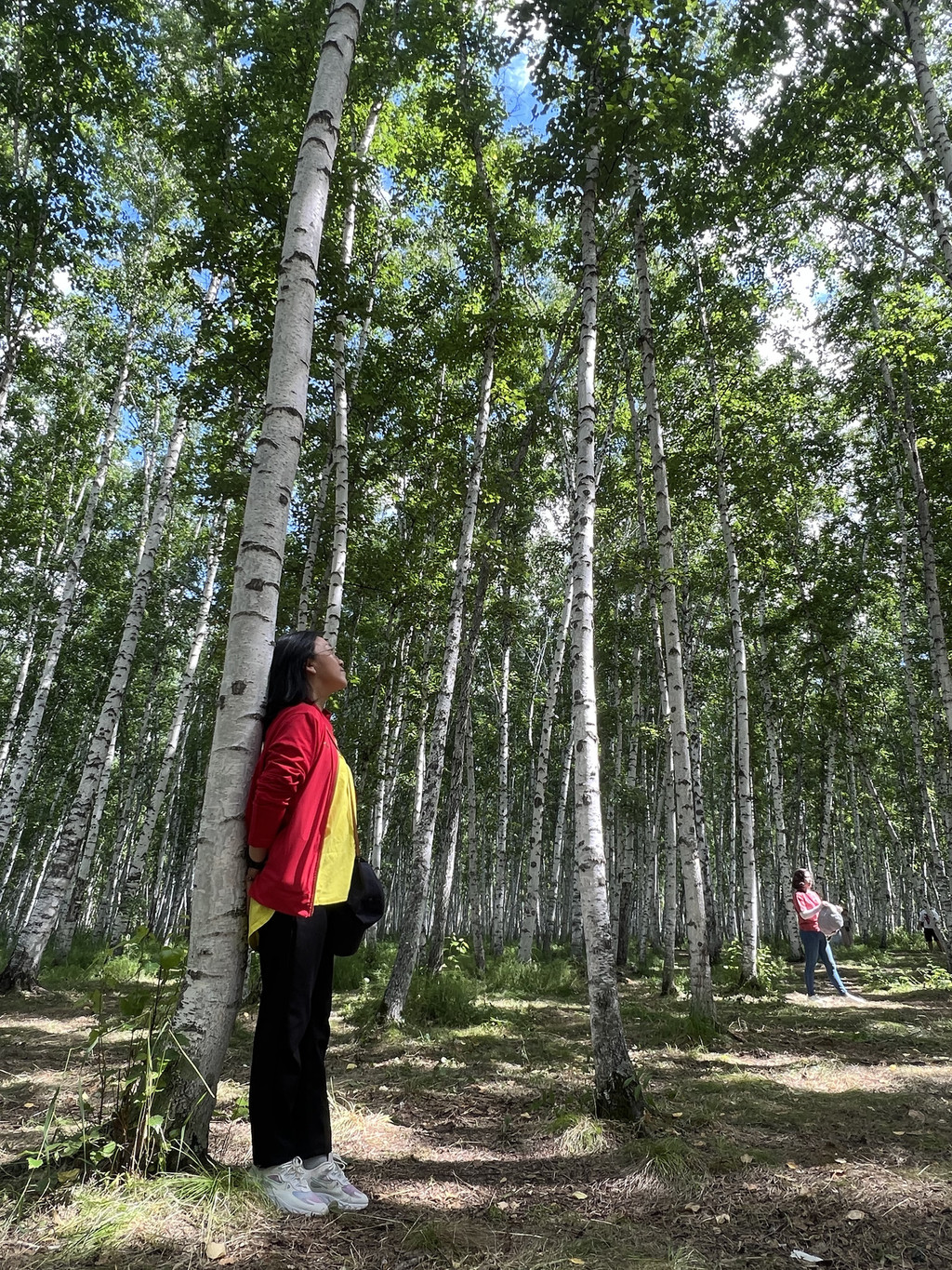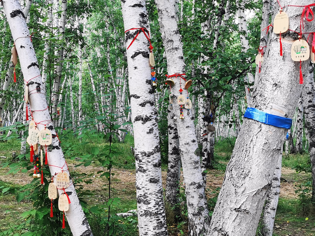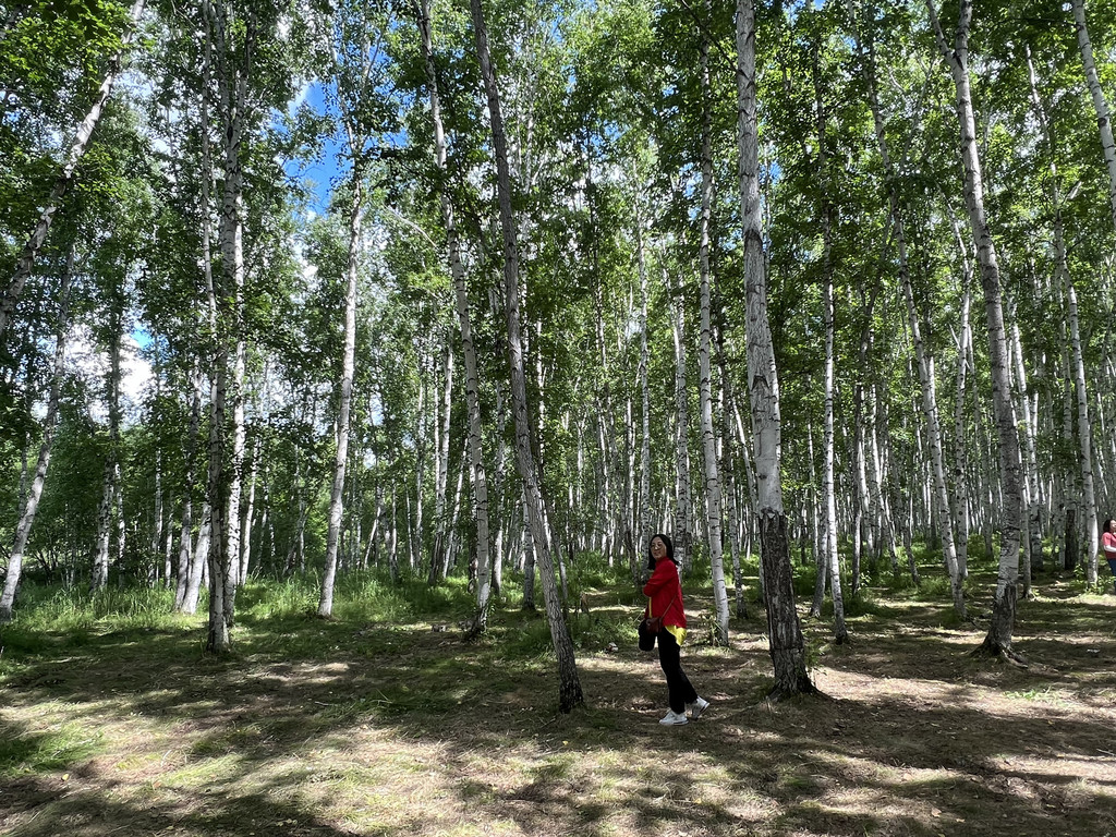 这里的白桦树粗壮、笔直,据说一棵手腕粗细的白桦树需要经过40多年才能长成,从树木的粗细来看景区内的白桦树真的颇有年代了。这里有浓厚的历史气息。这里的每一棵白桦树都充满了时间感。从远处看,白桦林是白色的。当你走近一看,你会发现每棵桦树都有无数的洞和疮。因为白桦树有着强大的生命力,尽管气候恶劣,环境恶劣,它们依然屹立在草原上。