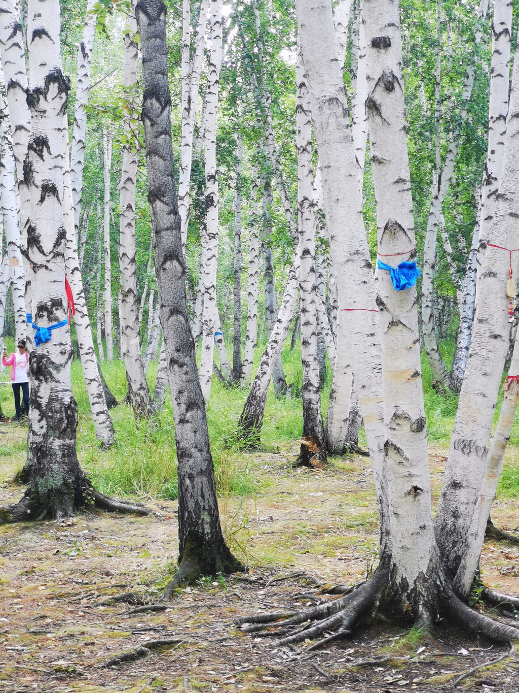 白桦林景区是离市区最近的原始森林,之后的几天都是穿行在大兴安岭林区,路旁闪现而过的都是白桦树、松树,但是像额尔古纳的白桦林景区只有白桦林的就此一处,它是中国面积最大、历史最悠久的白桦林。