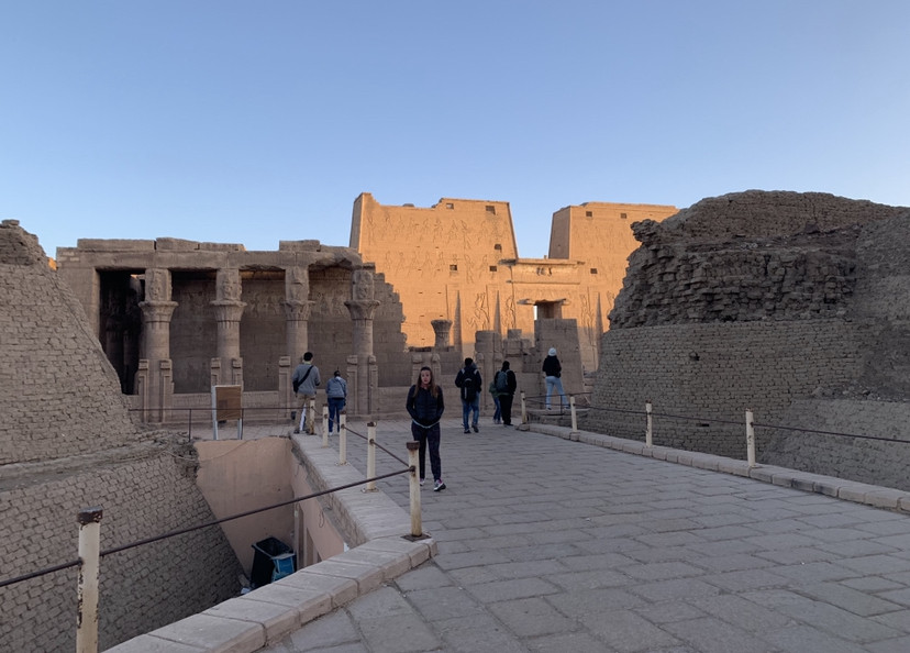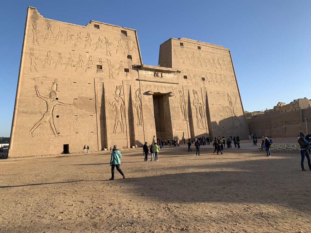 【埃都福神庙正面-清晨6点太阳从右手边晒过来-坐北朝南的神庙】