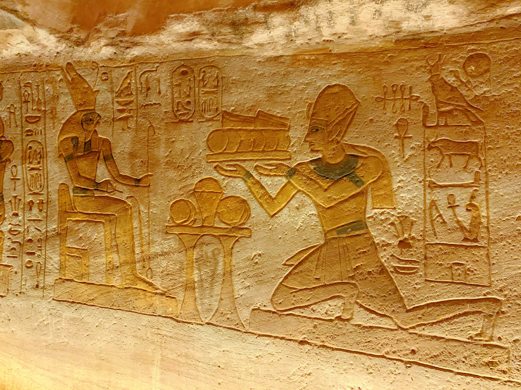 拉美西斯二世统治南北埃及王国67年,征服了巴勒斯坦地区。他称为古代埃及的包工头,从北部的孟菲斯到开罗到卢克索到阿斯旺、他的神庙和雕像无处不在。埃及的庙宇无论是奉神还是墓穴,墙壁上浮雕凸显的一个主题可以概括为君权神授:Isis、Osiris、Horus一家三口大神为法老各种开挂。那意思反正是法老有众神撑腰的,你们不要反啊。另一个主题则是炫富,浮雕像连环画一样描绘了埃及人的日常生活,奴隶们放牛打鱼做大麦面包,祭祀们向神灵献上莲花、面包、蜂蜜之类贡品。从这些雕刻中贡品的丰富和奴隶的数目就可以看出来法老的巨大财富。