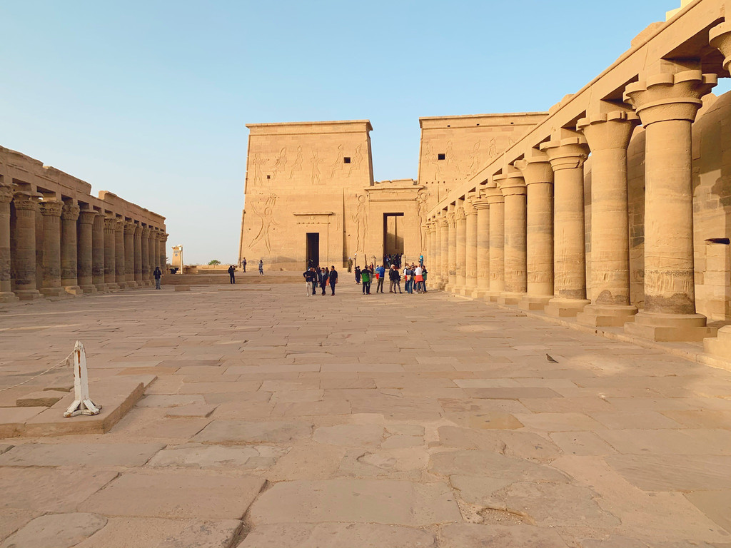 菲莱神庙大约公元前274年由托勒密二世修建而成,希腊建筑的口味很浓。亚历山大大帝在征服印度的道路上在伊拉克突然急病驾崩以后,帝国立即分崩离析。他的一位将军托勒密被委任为埃及总督。后来他自立为法老,史称托勒密一世。所以埃及的最后一个王朝的君王其实都是马其顿人。