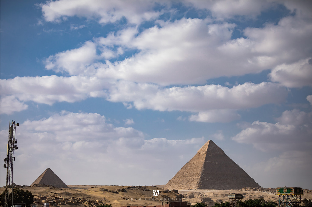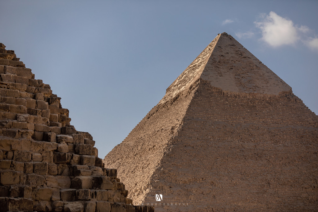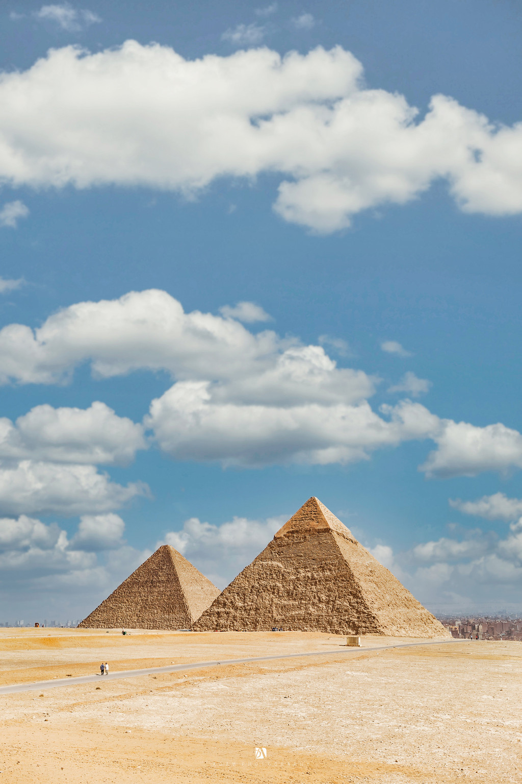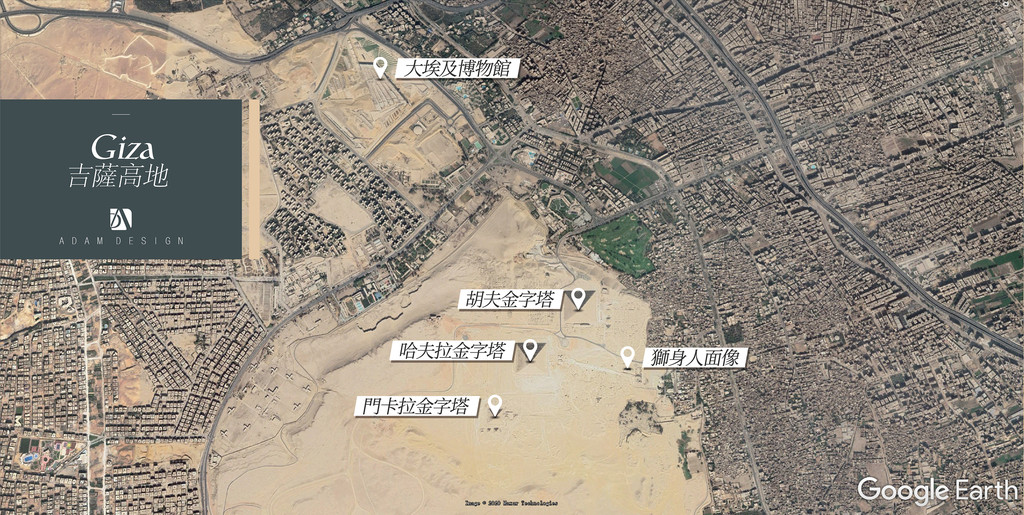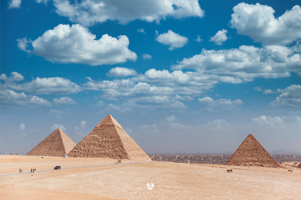 远眺吉萨高地,三位巨人安静的俯瞰着大地,君临天下,极目八荒。这组始建于古王国第四王朝的建筑距今已有4600年历史。从卫星的视角看东北到西南依次为胡夫金字塔、哈夫拉金字塔和门卡拉金字塔,分别由祖孙三代国王所建。金字塔是当世唯一现存的古代七大奇迹,古埃及文明在这一时代达到了空前的高度,金字塔则成为埃及的代名词。