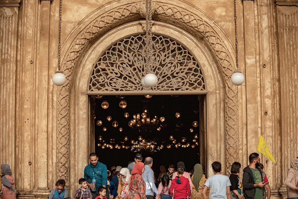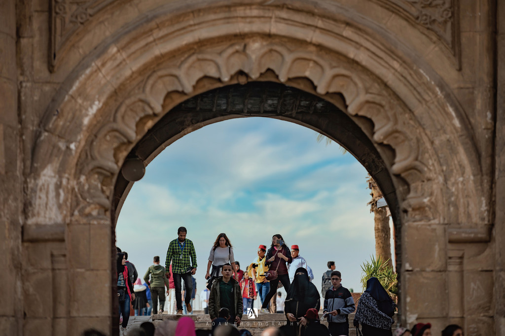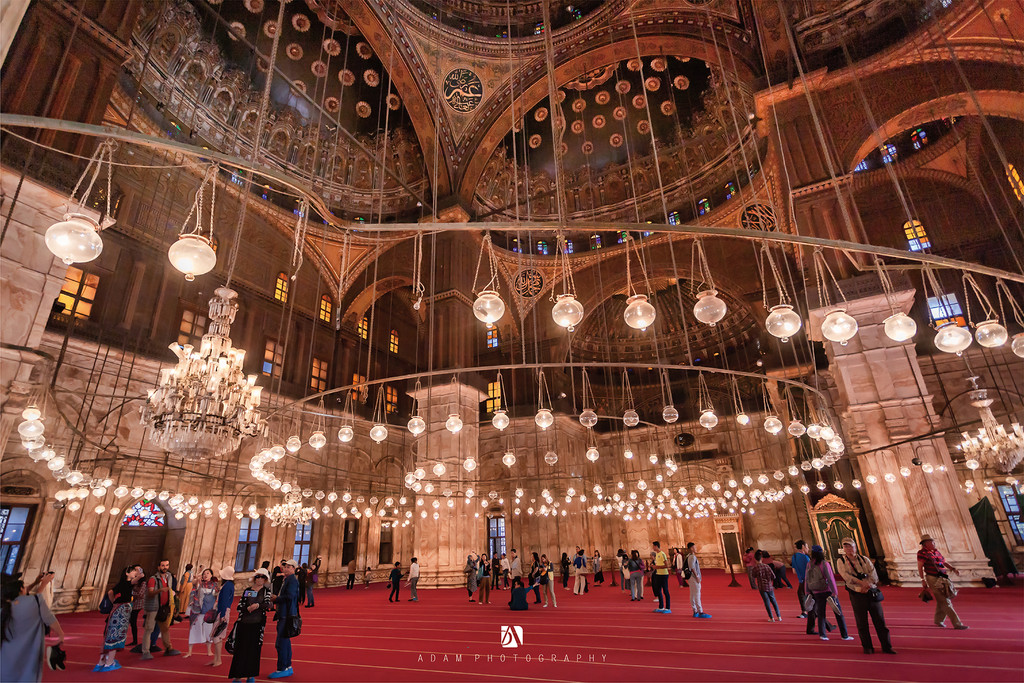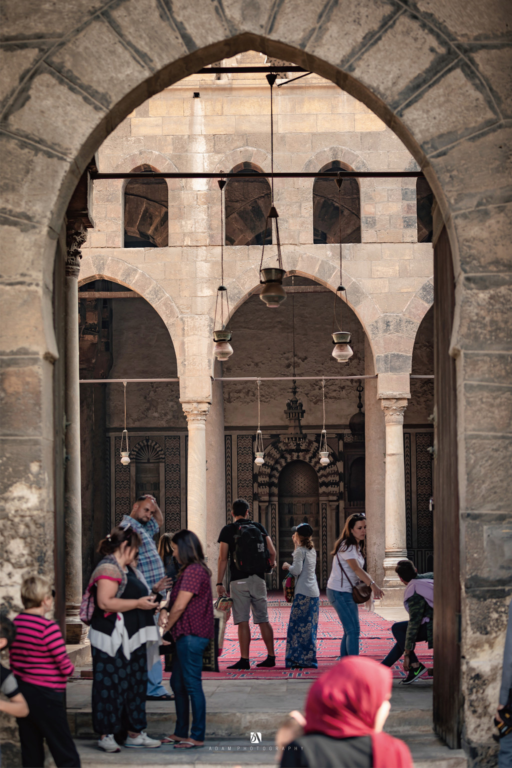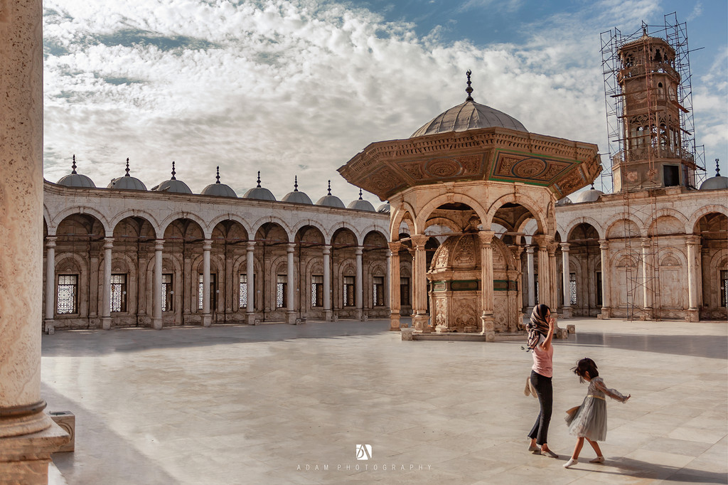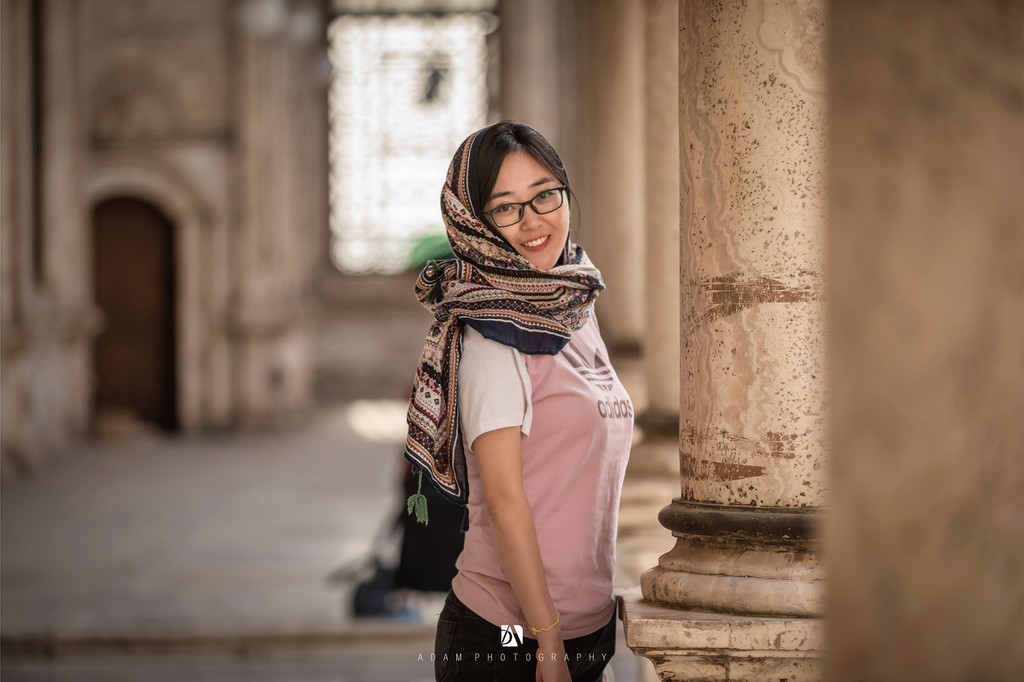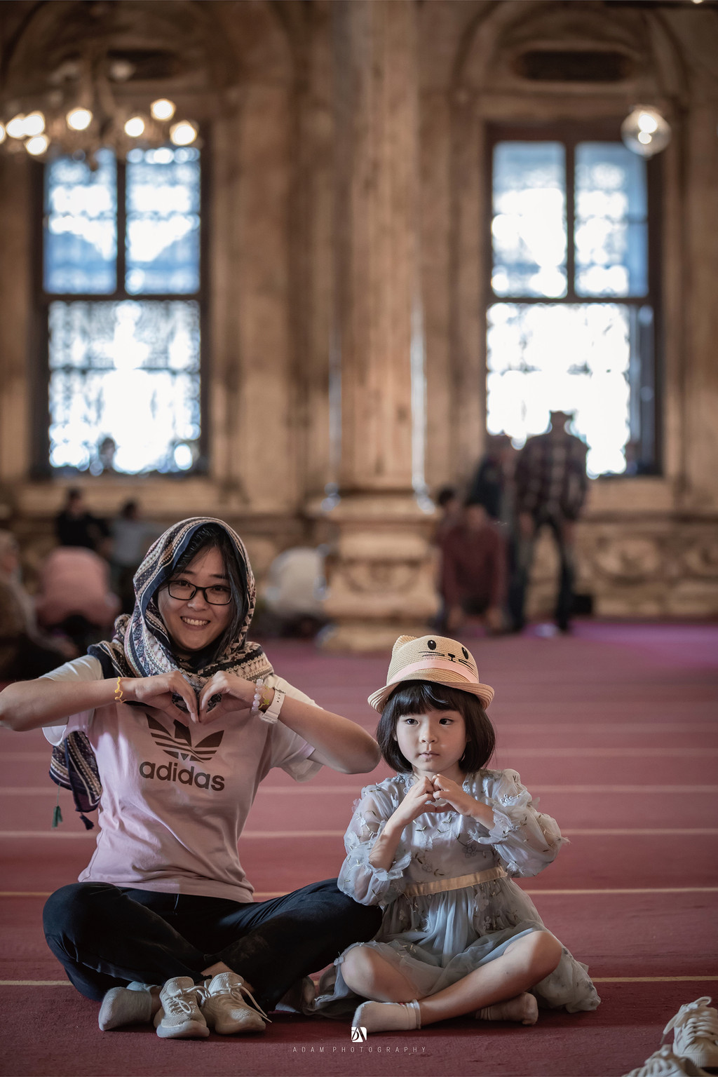 我们在东侧的广场下车,游人如织的广场被清真寺围绕着,南侧是著名的爱资哈尔清真寺,也是爱资哈尔大学的前身,世界最古老的学府之一。广场北侧是伊玛目侯赛因清真寺,部分什叶派认为伊斯兰教先知穆罕默德的外孙侯赛因的头颅就埋葬在寺庙中,这个说法其实存在争议。阿明告诉我们可以进去参观,看到里面都是虔诚祷告的教徒,不想在他们和真主交流时去打扰他们,只在门口看了看就走开了,其实是因为我发现Mia又被人强势围观了。