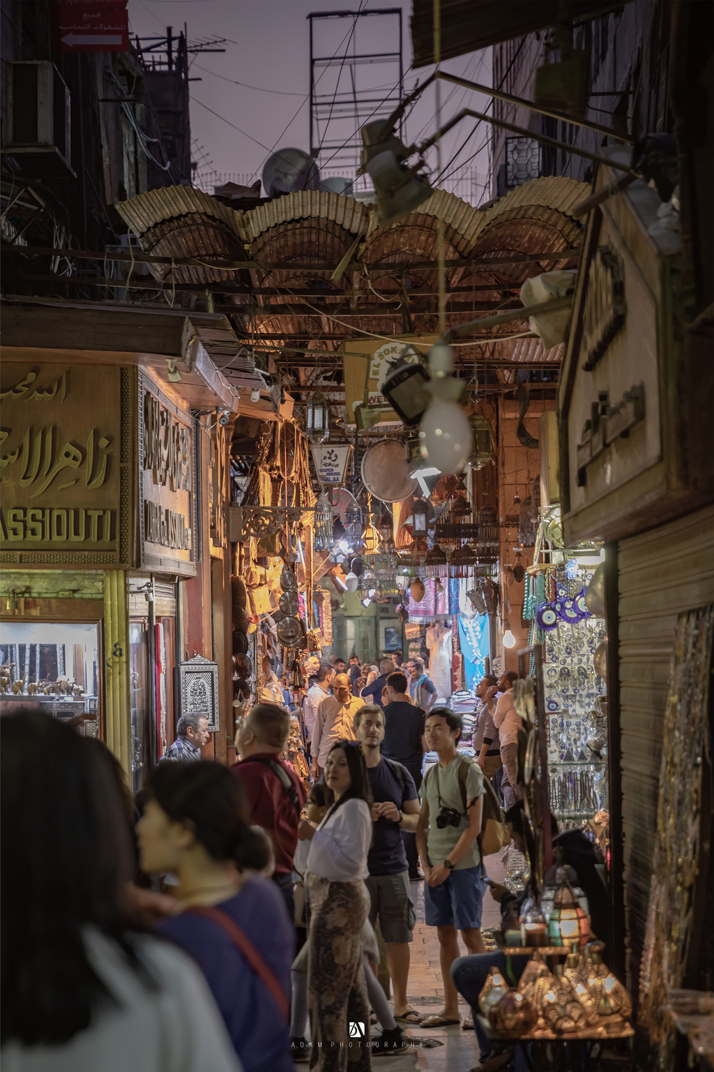 接近暮色,我们抵达汗·哈利利集市,集市在埃及博物馆东侧,距离大约3公里,可车程却开了将近1个半小时,进入集市区域后车辆开始龟速前行。汗·哈利利集市是中东地区最大的市场,据称有超过4000家店铺,最古老的店铺甚至可以追溯到公元14世纪。这个市场是世界文化遗产伊斯兰开罗的一部分,迷宫一样的巷道两侧都是鳞次栉比的店铺。从天桥上往下看,交通几乎是瘫痪状态,今天休息日到处都是摩肩接踵的人群,一眼望不到头的店铺给人一种几乎要延伸到地平线的错觉。