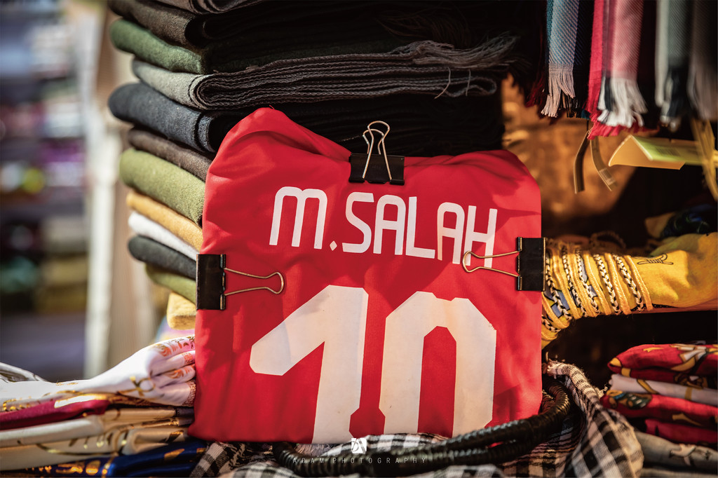 于是我们被他的热情打动,走进他的杂货铺。说实话他的货物并没有他的口才优秀,看我们不感兴趣,他将货架上萨拉赫的国家队队服拿下来,表示孩爸身材很适合,没想到孩爸直接拒绝了他