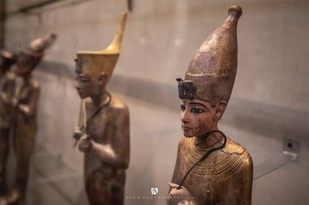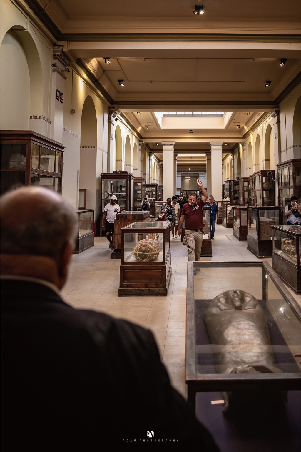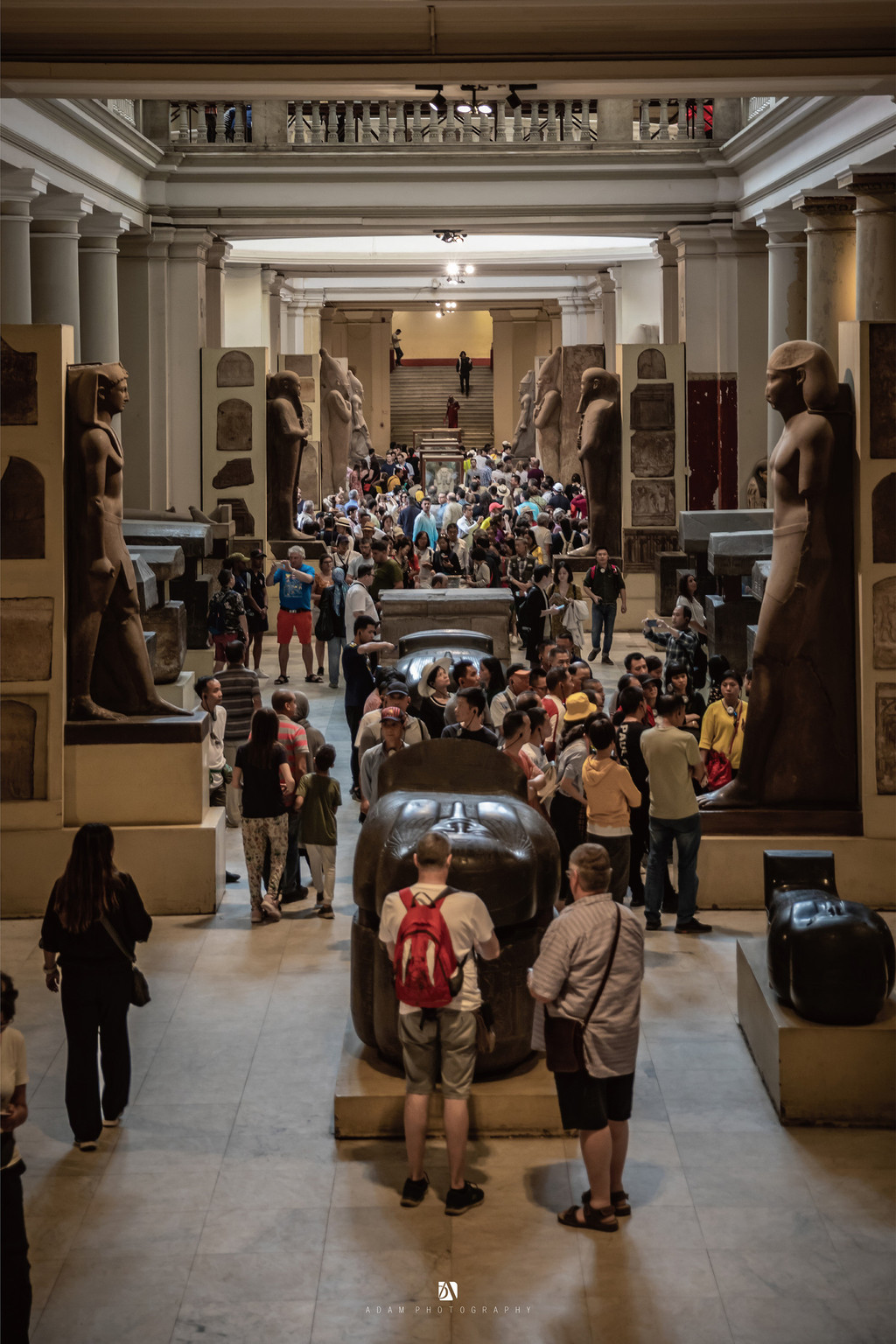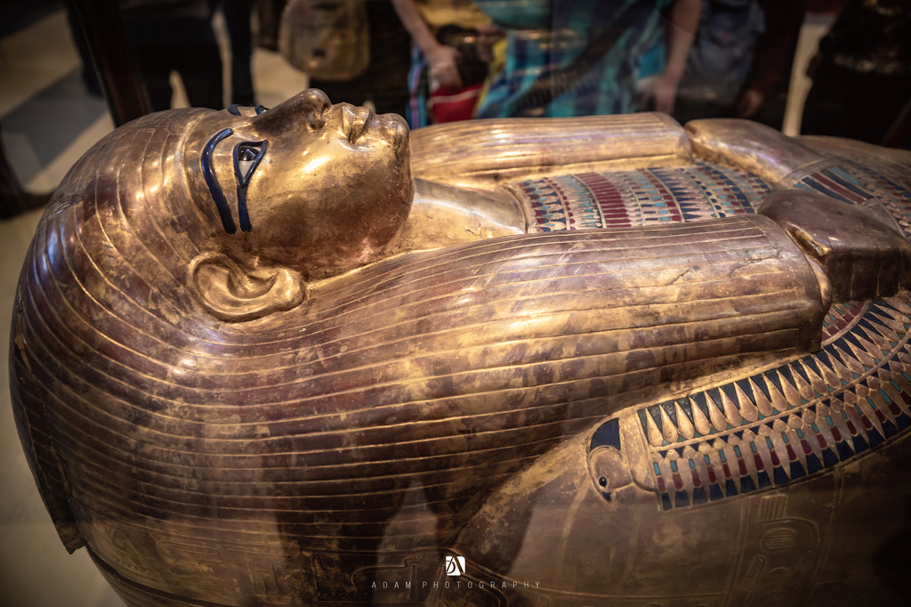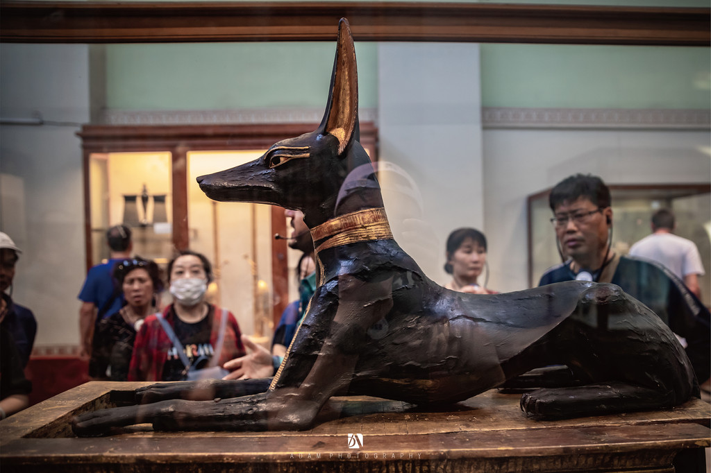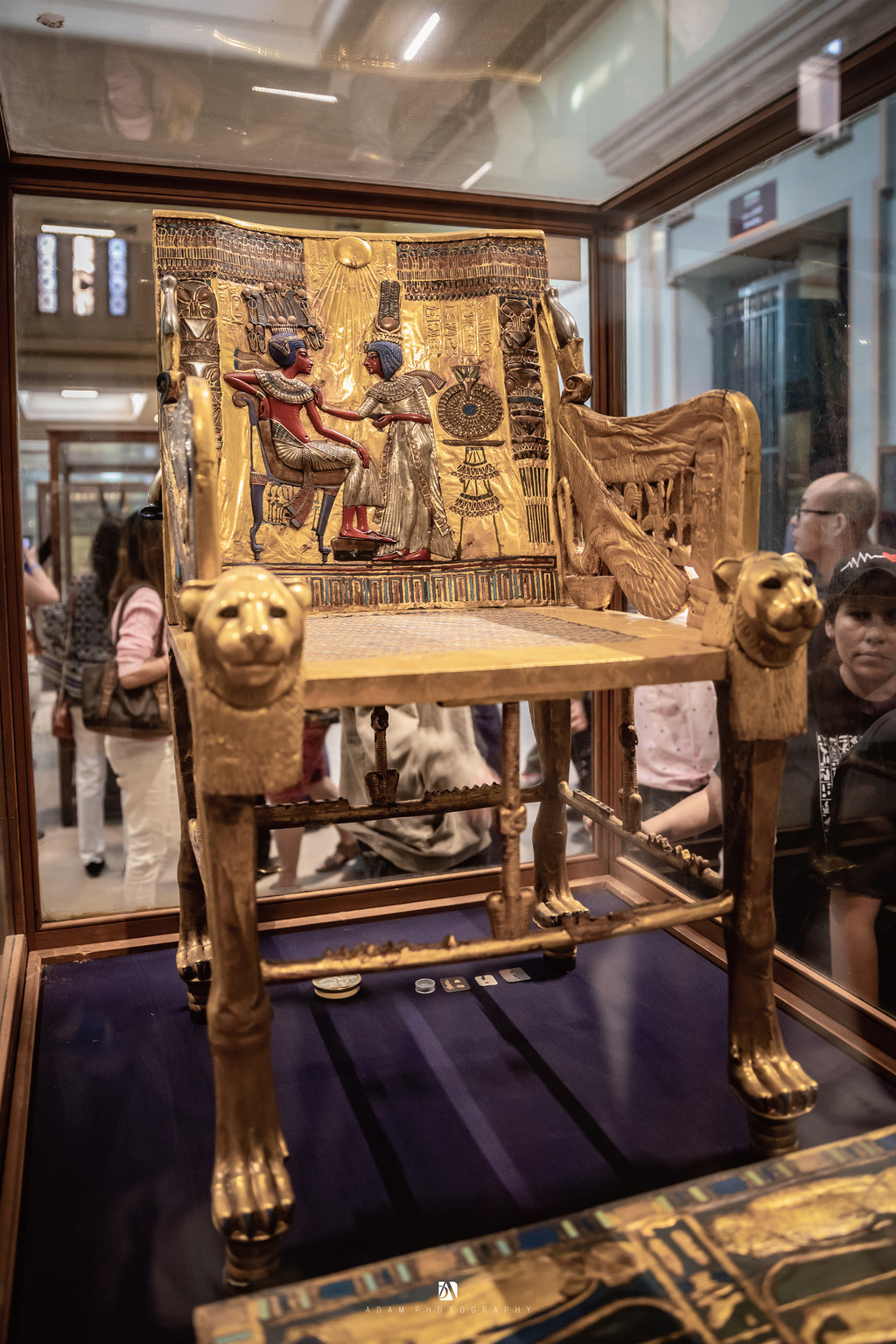 二层是专题展区,其中最重要的就是图坦卡蒙展厅和木乃伊展厅。木乃伊展厅需要单独购票,我们此行时间有限,更不想去打扰法老们的安宁,所以重点参观了图坦卡蒙展厅。对于埃及政府利用木乃伊展出赚取收益的做法一直受到世界的诟病,法老王们本应该安静的躺在属于他们的墓室,现如今只能挤在狭窄的玻璃柜里供游客们参观,像极了荒诞不经的民间展览,这些权倾天下的君王们泉下有知不知作何感想。