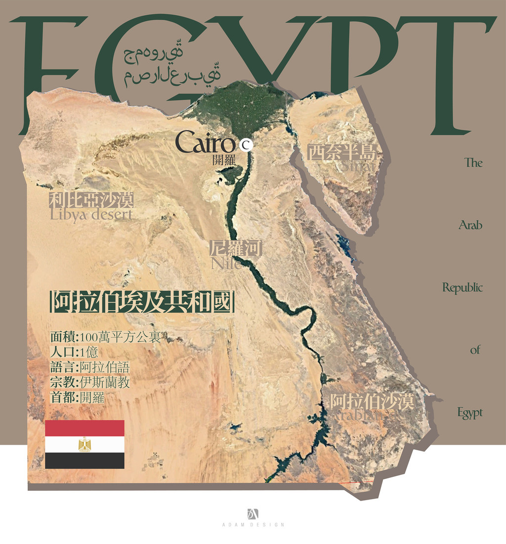埃及全称阿拉伯埃及共和国,位于北非东部。面积达到100万平方公里,约为中国的1/10。是非洲人口最多的国家,2020年2月人口突破1亿。