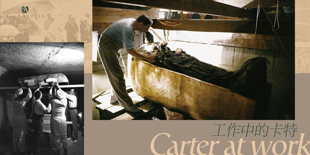 步入图坦卡蒙展区,首先映入眼帘的是由摄影师哈利·伯顿拍摄的墓穴内部放大照片,这些百年前的照片在2015年被修复成了彩色版本再一次惊艳了世界。说起哈里·伯顿就一定要提起另一个重要人物,英国人霍华德·卡特,图坦卡蒙陵墓的发现者,在卡那封勋爵出资下,卡特历经挫折经过20年的追寻,终于在帝王谷挥动最后一铲时发现了墓室入口的台阶,这一发现震惊世界。之后更是用了10年时间进行清理、挖掘和保护。卡特也因为这一人类考古史上最伟大发现而名垂史册。正是因为他的坚持不懈,我们才能在三千年后的今天真正认识这位年轻的法老王。在过去的百年间图坦卡蒙已经成为埃及的代名词,他并不是古埃及历史上最卓越的君王,但因为他陵墓的完整性,成为现代最著名的古埃及法老。卡特曾说图坦卡蒙对世人最大的贡献在于他的死亡并很好的埋葬,而我认为他的伟大之处是在三千年后依旧以法老王的姿态俯瞰众生时,让人类知道自身的渺小与平凡,一切来自于尘土,也终将归于尘土。