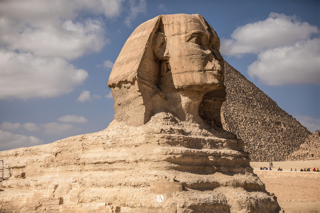 据说考古学家在附近发现了很多有颜料痕迹的石头,推断狮身人面像曾经是彩色的。而经过四千多年的风雨侵蚀颜色早已消散,头顶的圣蛇和胡须也不见踪影,最严重的损坏在鼻子,而关于损坏的原因有多种说法。有说是拿破仑来到吉萨看见狮身人面像威风凛凛仿佛在向他示威,拿破仑很生气,于是令手下把鼻子炸掉。还有人说在拿破仑之前就损坏了,是被突厥人当靶子射箭导致的。不管怎么解释都莫衷一是,这终究是个谜,就像狮身人面像本身就是个谜一样。近期有新闻说在它的正下方发现有开放空间,具体是什么没人知道。至今埃及还有许多发现并未公开,所以狮身人面像在未来很长时间内也都将是一个谜。