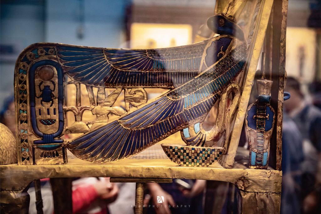 一路前行,从陵墓中法老的镀金雕塑到墓葬的守护者阿努比斯神,从存放内脏的卡诺匹斯罐到黄金座椅,还有那数不清的家具、雕像、武器、战车、拐杖等等,无不透露着王室的高贵与奢华。特别是黄金座椅,被卡特称赞为“迄今为止埃及出土的最美丽的文物”。椅背上安克沙门王后为法老王涂抹香油的场景,在三千年后依旧能感受到他们之间那份温馨和美的爱情。只可惜这一切随着法老王的离世而烟消云散。安克沙门最终下嫁给了法老王的继任者艾伊『据考证艾伊是泰雅王后的弟弟,也就是说他是图坦卡蒙和安克沙门的舅爷爷,想到这里我三观尽毁 ...』,而这些奢华的随葬品也只能伴随法老而去,放入陵墓供他在杜阿特的世界中享用了。
