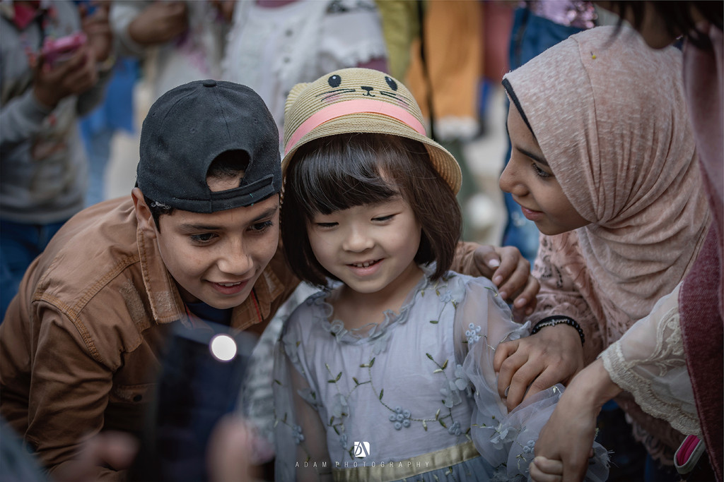 我们找了家中国饭店吃饭,据说厨师也来自中国,味道嘛,算了不说了,只能说饿了的情况下吃啥都好吃。吃完饭我们准备再买点吃的,刚才在老城遇到乞讨的一家把吃的都给他们了。在超市旁边的商店遇到了几个当地年轻人,看我们是中国人主动用中文跟我们打着招呼,一男一女中文都说的很棒,原来都是爱资哈尔大学的学生。这所大学建校时间超过千年,是伊斯兰教最重要的大学之一,我们不由对他们非常感兴趣,于是攀谈起来。在校学习中文的他们在这附近的店里工作,为了锻炼自己的中文,因为在新开罗有很多中国游客,他们对于从中国来的我们也感到非常好奇,那种对中国的向往从小伙眼神的微光中闪烁着,孩爸问小伙: