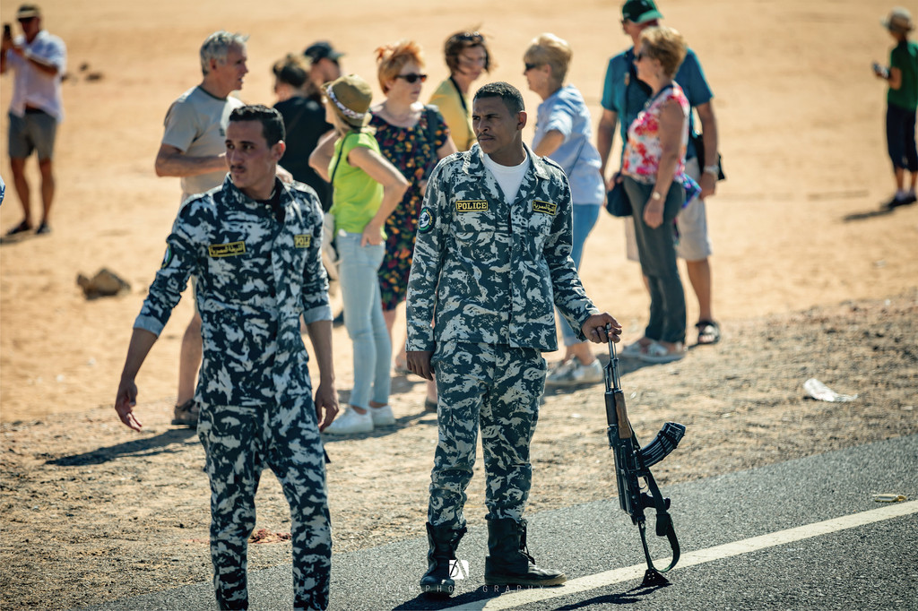 我们这趟航班落地的基本都是国内来的游客,在机场的出口等待属于自己的车辆。机场门口到处都是警察,车辆也在等待着警察的放行。埃及的旅游业收入对于财政来说占比很大,几乎所有跟旅游相关的产业都是政府在进行管理。所以对于旅行者来说全程都有警察进行监控,从出行的线路、地点、出发到达时间等,警察时刻像影子一样跟随着。等待放行的时间是漫长的,但是通过等待换来了安全还是值得的。