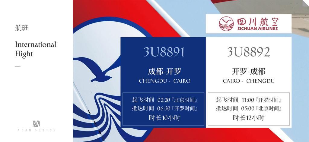 「 中国怎么飞埃及 」从中国前往埃及 ,目前可从国内多个城市直飞,包括 北京 、 广州 、 成都 等。而 成都 拥有目前中国地区前往埃及耗时最短的航班,全程只需10小时左右。每周二五执行往返,均为夜航。夜航的好处就是少一晚酒店住宿且不耽误白天的行程。所以我们此次行程选择了川航。