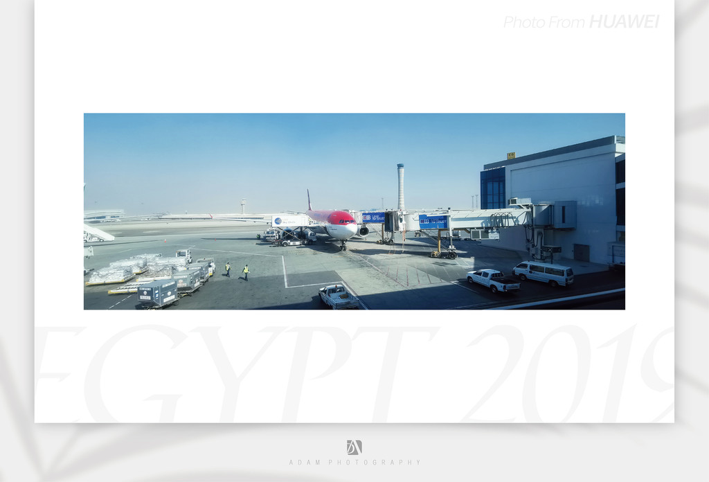 经过盘旋等待,飞机终于平稳降落在了开罗国际机场。走出机场大门的一瞬间,身上的疲惫瞬间被埃及的炙热吹散,并不通透的空气中弥漫着黄沙的气息。虽然地处沙漠腹地但空气却不如想象中的干燥,反而有种闷热感,也许这就是来自尼罗河三角洲的滋润。今天气温大约接近30度,暴露在空气中没过多久就汗流浃背了,这就是埃及给我们的初次问候。