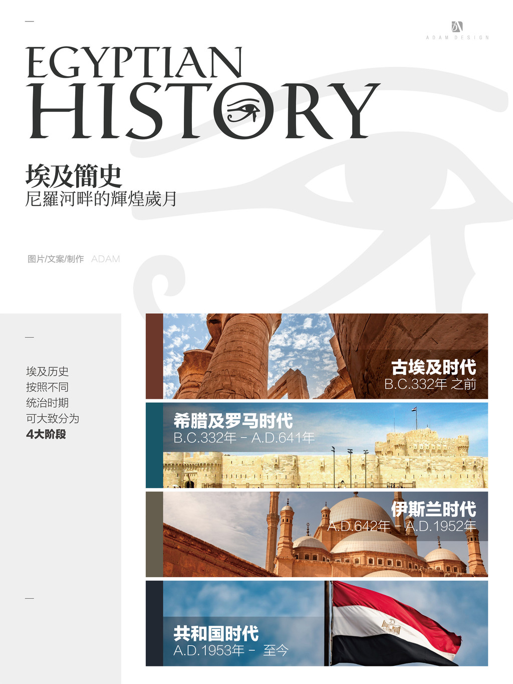 不同于风光之旅,在古埃及文明那不朽魅力的感召下,旅行前的功课就显得尤为重要。深刻了解多元文化及其背后的故事,方能在心中建立起一个属于自己的古埃及 。接下来将分为2个部分,对埃及简史和相关资料进行概括性总结,均为个人原创作品。图文较多,感谢阅读。