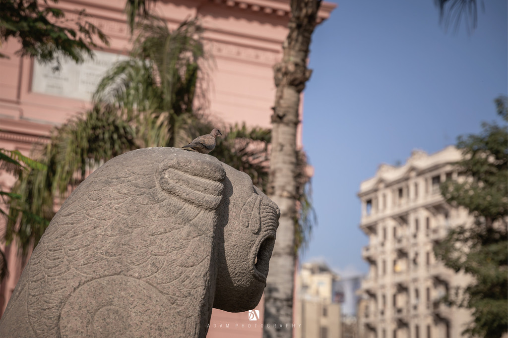 以下简称埃博,它毗邻尼罗河,坐落在开罗的解放广场旁,我们抵达的时间正赶上埃博117周年庆,关于古埃及没有谁比这里知道的更多,门口的院子里都是脚手架和忙碌的人群。好像埃及人从不吝啬自己的文物,可以随手触摸的石雕在院子里零散的摆放着。中央的水池里种着纸莎草和睡莲,大门上方的雕塑有着明显的希腊风格,左右女神的手中也分别拿着纸莎草和睡莲,这两种植物分别象征着两方土地,也就是上下埃及。