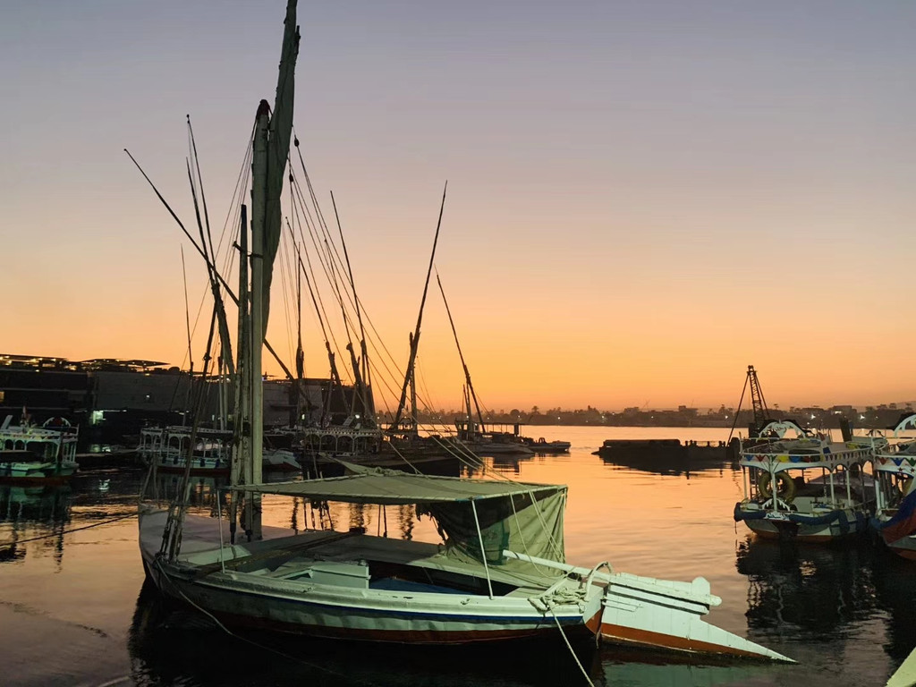 卢克索也有热气球,玩的人不多。拍照没有土耳其那么好看,但是一边是尼罗河绿洲,一边是沙漠,一侧是太阳,一侧是月亮。我觉得不差钱的话坐一坐无妨。天未亮的尼罗河,人们都在做早上第一次祈祷,古迹的一侧静悄悄,另一侧全是歌声,挺奇妙的体验。卢克索让人感觉到古代和现代的割裂,或者说过往从未离开过这片土地。
