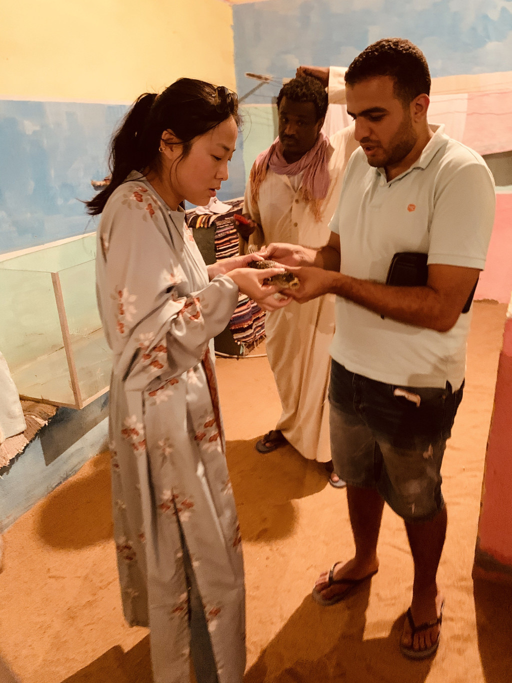 当地导游安排了一个学阿拉伯语的教室,玩了20来分钟,笑到头掉。再去拜访了当地人的家,喝果汁,看鳄鱼,整体商业感还不是特别重。