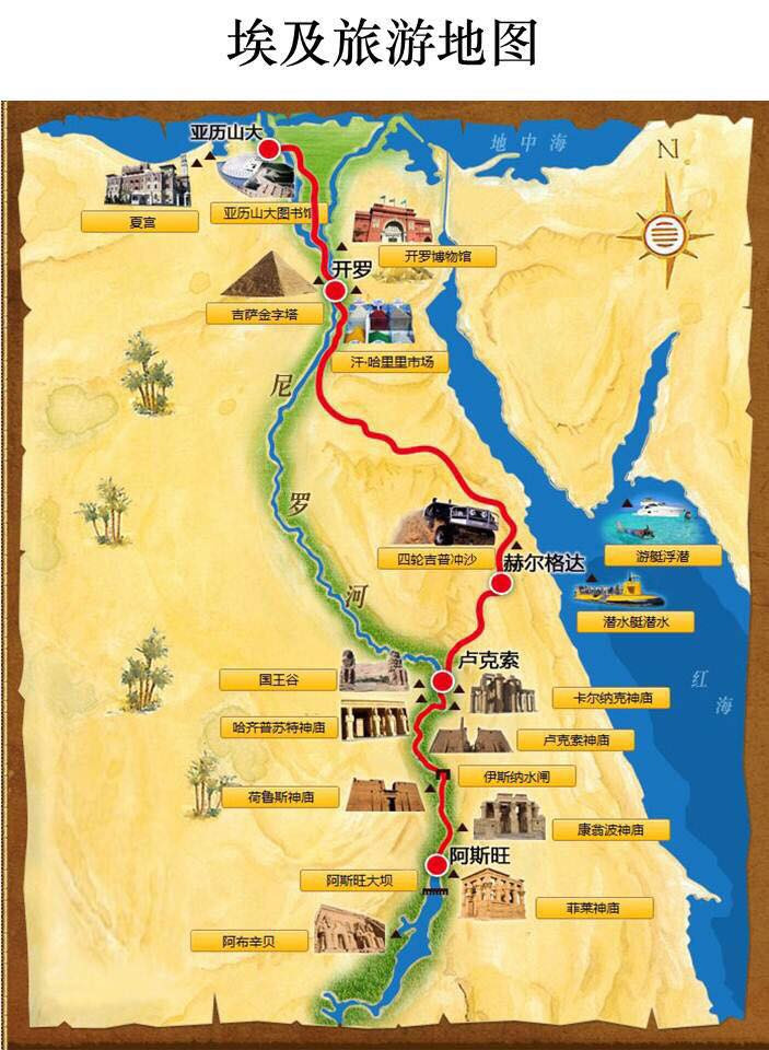 地理概序:埃及是非洲东北角的国家,苏伊士运河把埃及和阿拉伯半岛隔开。尼罗河流过非洲很多国家,埃及只是最末端的国家。有一个地理上的思维需要稍微变换下的是,尼罗河是从南部流向北部的,上下埃及是顺着尼罗河的方向,南方称上埃及(靠近苏丹),北方是下埃及(开罗、亚历山大等)。
