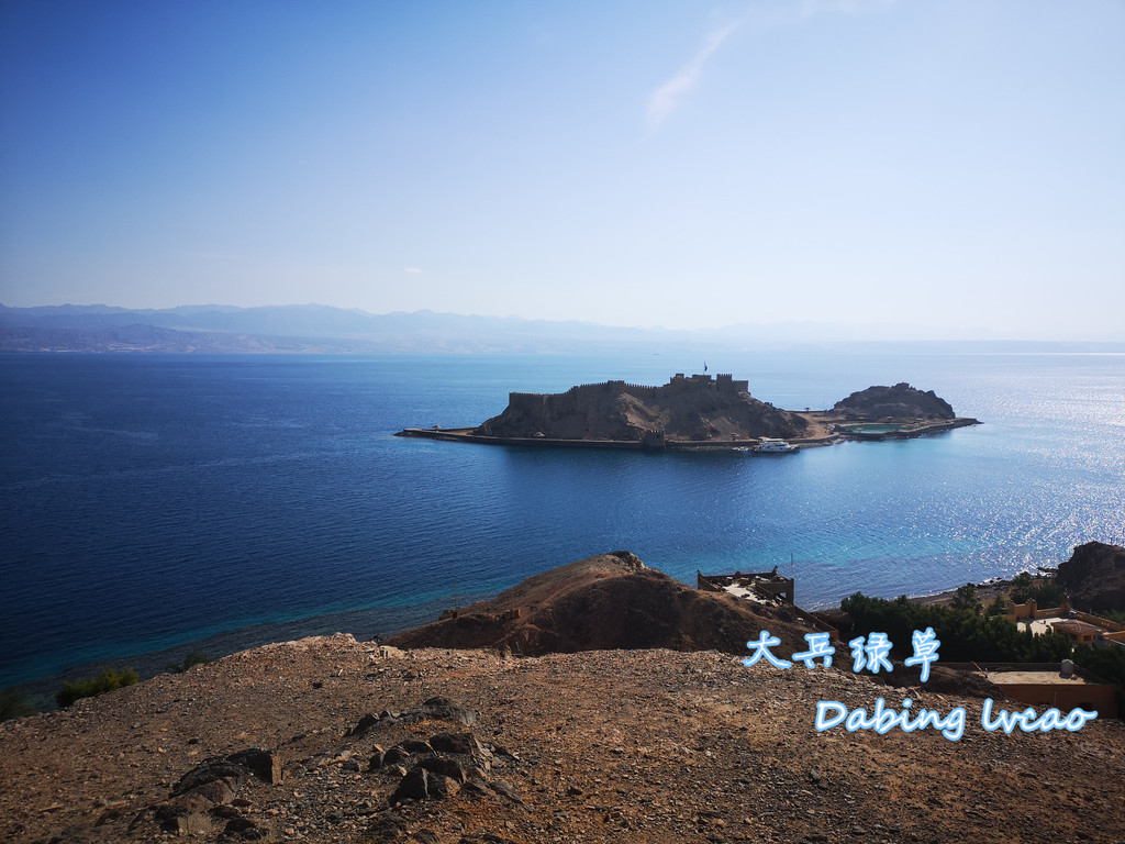 在前往塔巴的途中,我们看见了静静卧在红海中的法老王岛,据说历史上这个岛屿有些名气,后来被废弃了,目前能看见岛上的城堡和城墙。