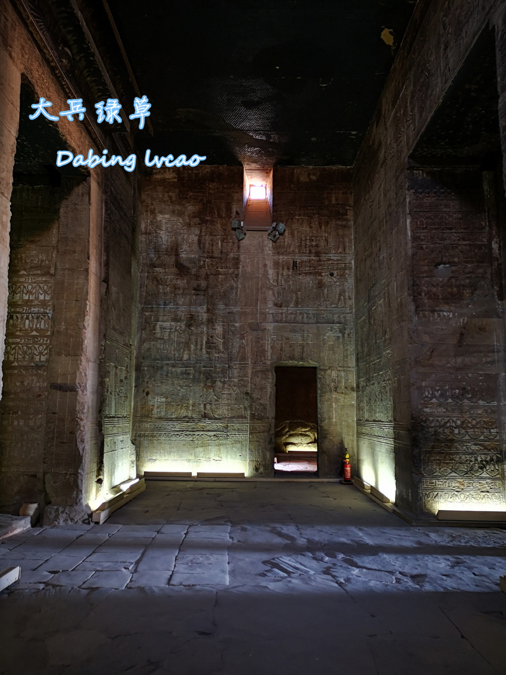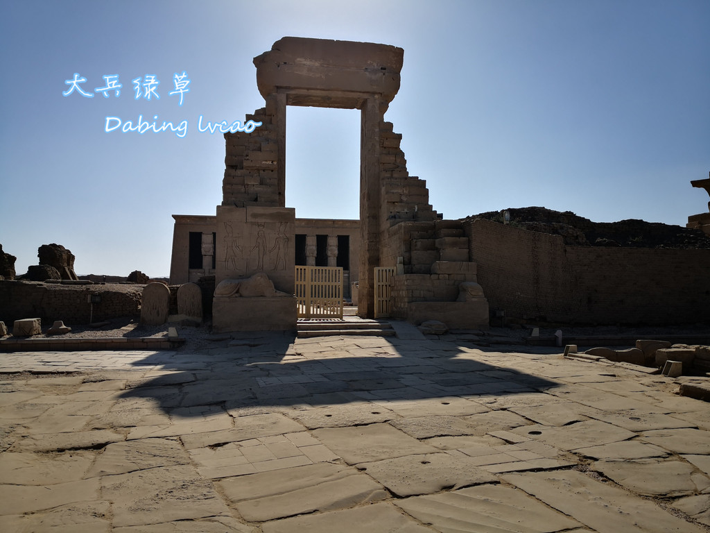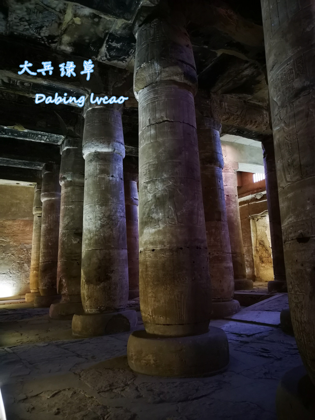 穿过狭窄的楼梯甬道,来到神庙的二层,首先看到的是这座只剩几根柱子的凉亭,据说是为埃及艳后克利奥帕特拉而建的.