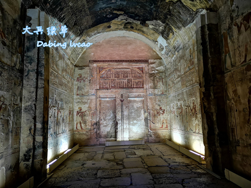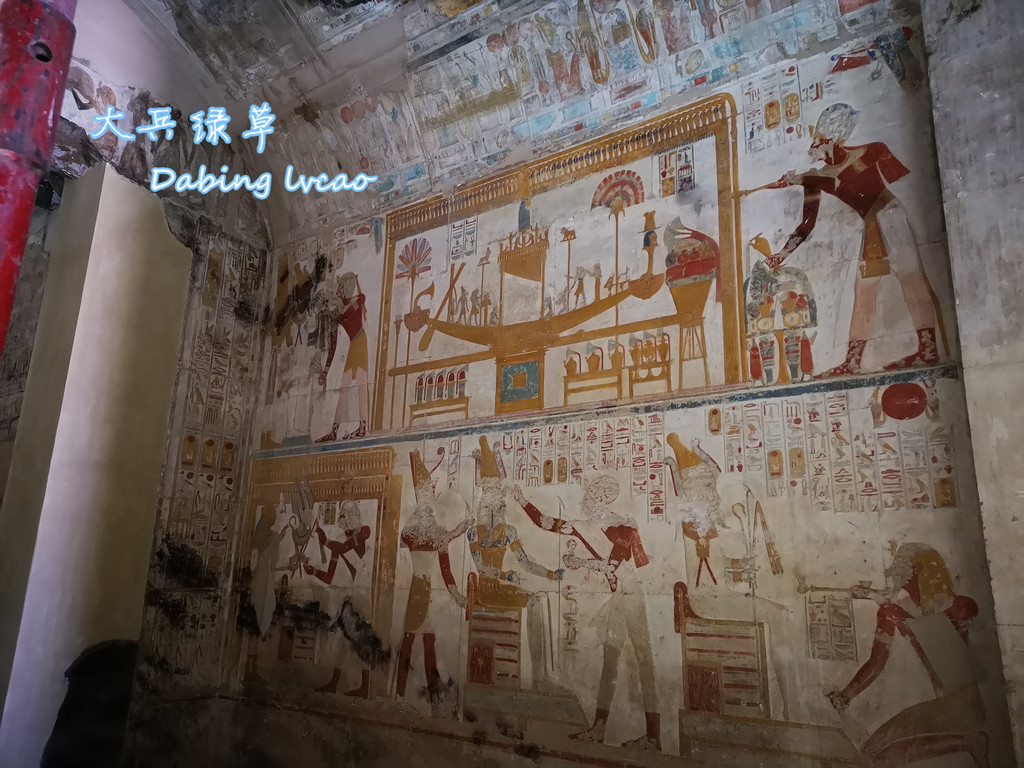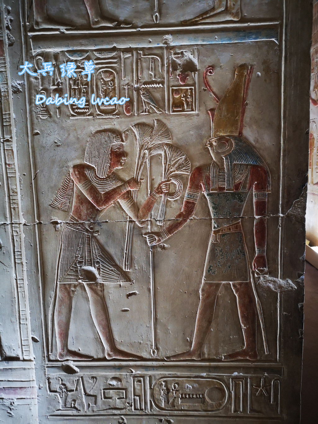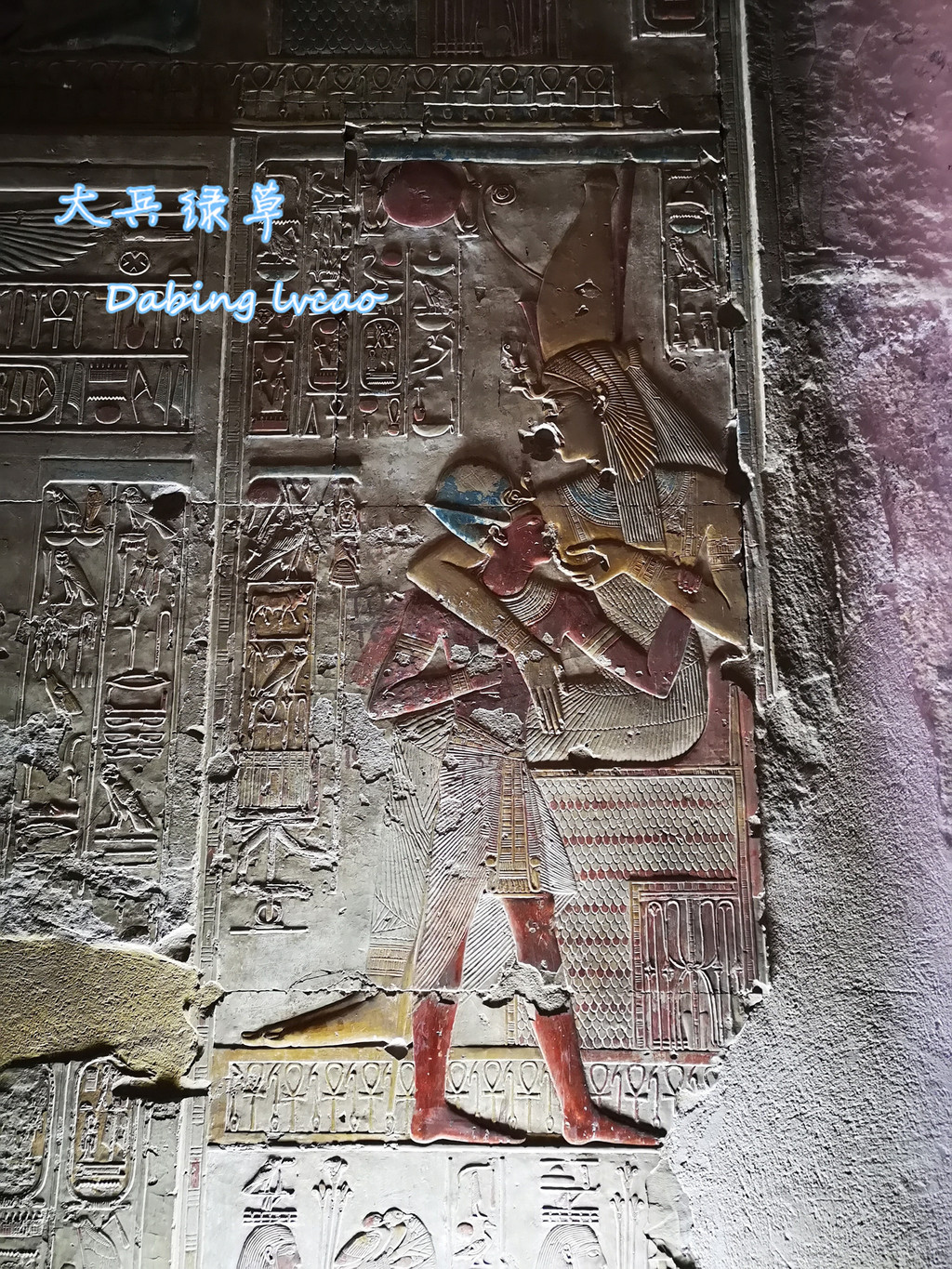 阿拜多斯神庙正殿前有12根方形立柱连廊,显得威严端庄,立柱上刻着女神伊西斯和冥神奥西里斯对法老的祝福,令人惊奇的是这些壁画颜料直到现在还依然鲜艳,这可是三千多年前的作品啊!