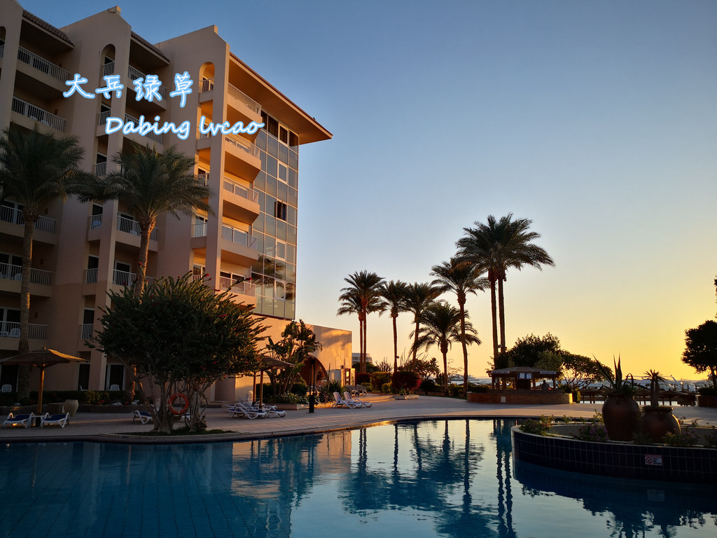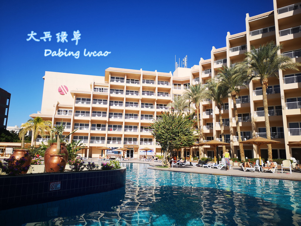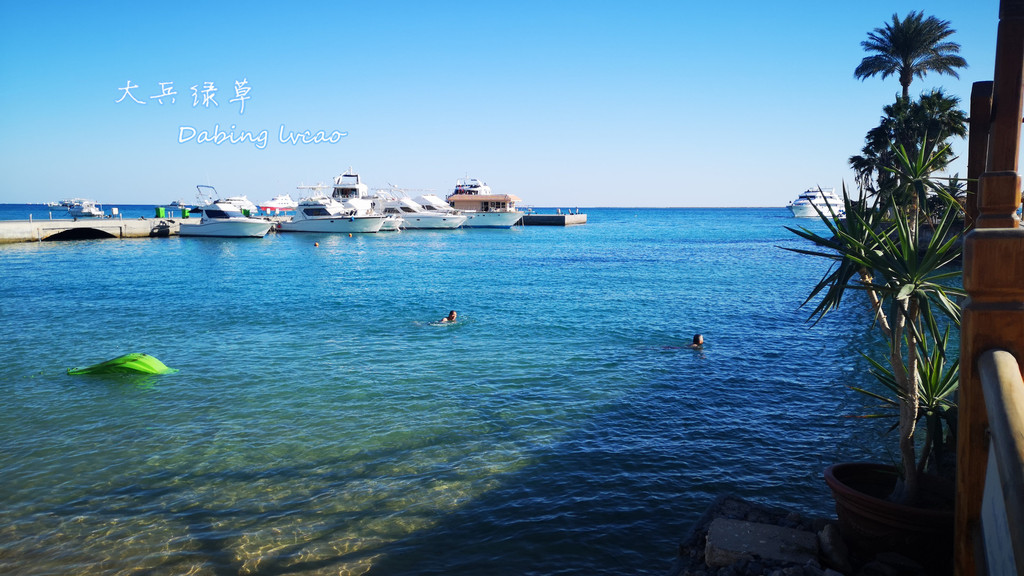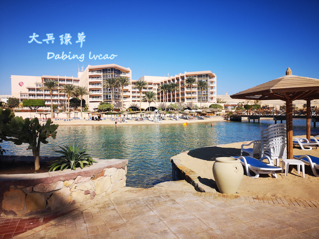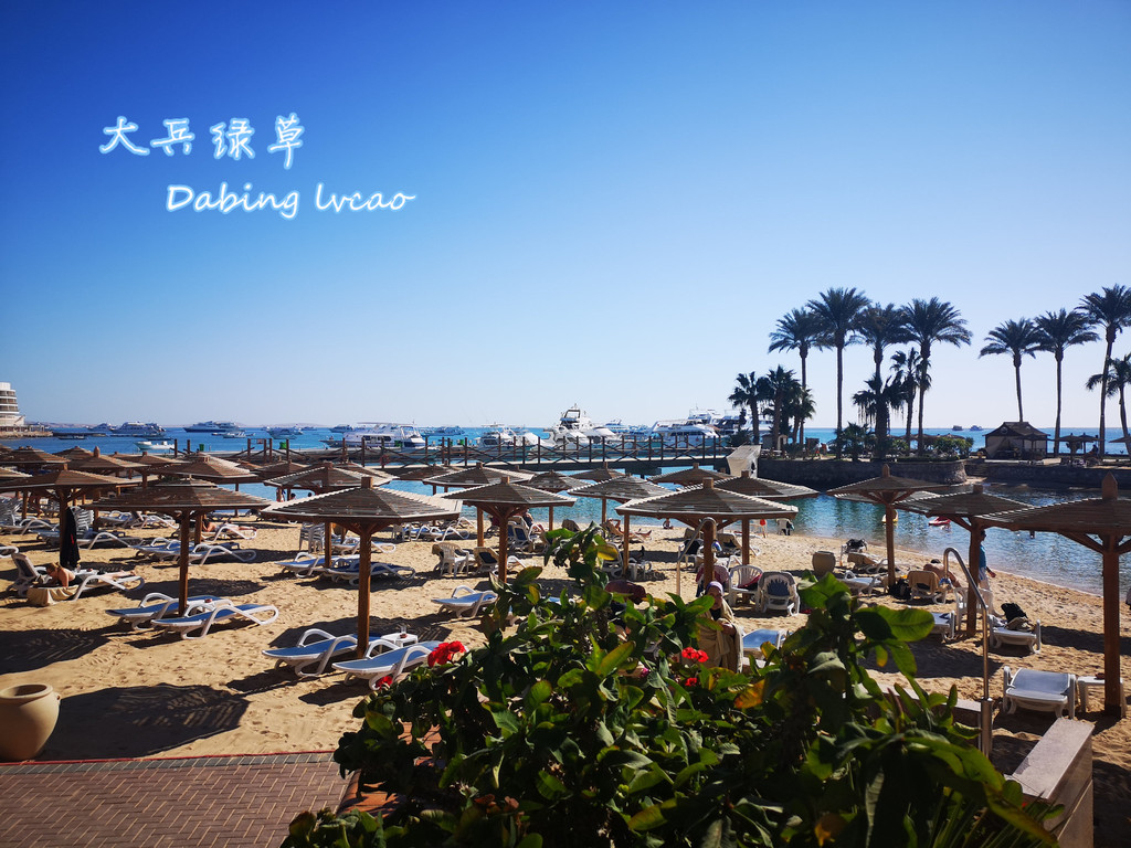 整个城市沿着红海呈条状展开,绵延数十公里。海边基本都是酒店,这些酒店布局大致相同,内侧靠公路是酒店主楼,下面是酒店大堂、餐厅,后面是绿树花丛中的游泳池、体闲场地,最后面是海滨,海滨上一般有沙滩,沙滩上遮阳伞林立、休闲床遍布。这里红海的颜色碧蓝如洗,透出无穷诱人的魅力,在海中畅游一圈,躺在沙滩上闭目养神,一个多月的旅途劳顿就消失的无踪无影了。