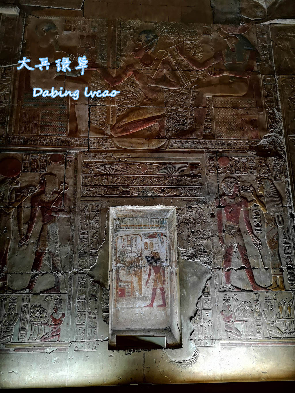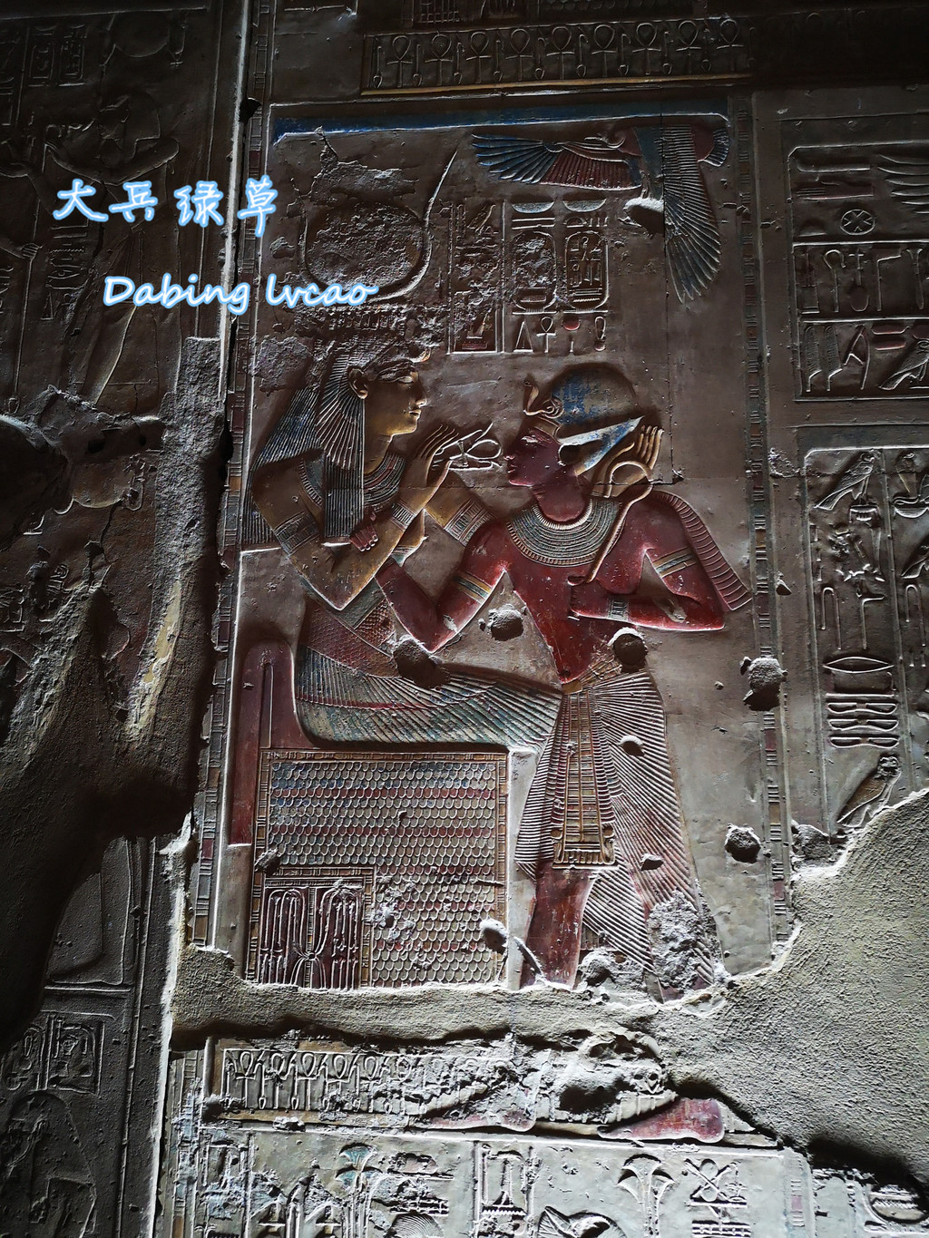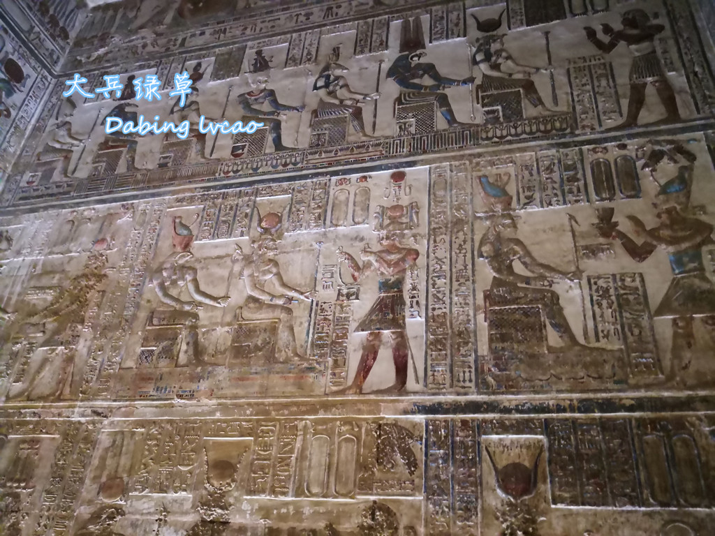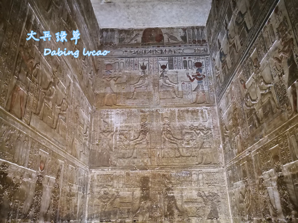 神庙大殿内的浮雕也保存得相当完整,浮雕从墙壁到屋顶布满了殿内的每一个角落,雕刻精美,色彩鲜艳,令人震撼。