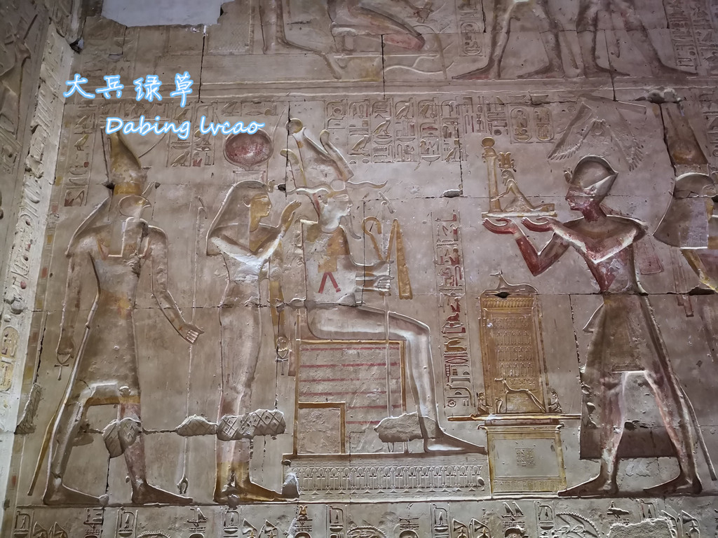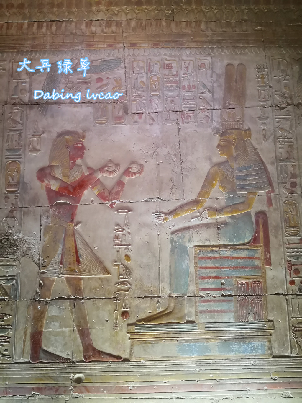 阿拜多斯神庙也称塞提一世神庙,是由古埃及第十九王朝法老塞提一世(公元前1318年-公元前1304年在位)修建的,那个时期古埃及国力达到了鼎盛,内外安定,为文化创作,精雕细刻提供了良好得条件,所有这里的壁画精美异常,堪称是全埃及最美的浮雕壁画。