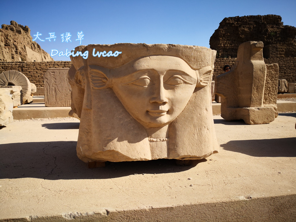 在丹达拉神庙的旁边,有许多小神庙建筑遗迹,大多仅剩下断垣残壁,从遗留下来的一些雕塑,还能看到当时的艺术水准,如这些哈托尔塑像和这个贝斯神像。