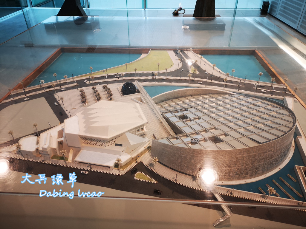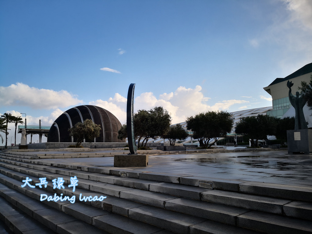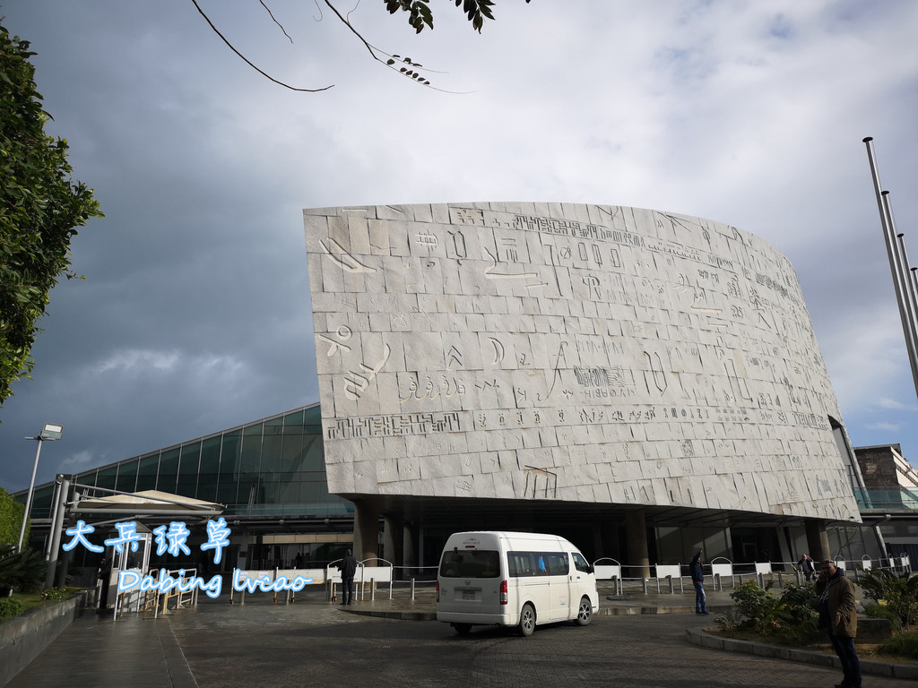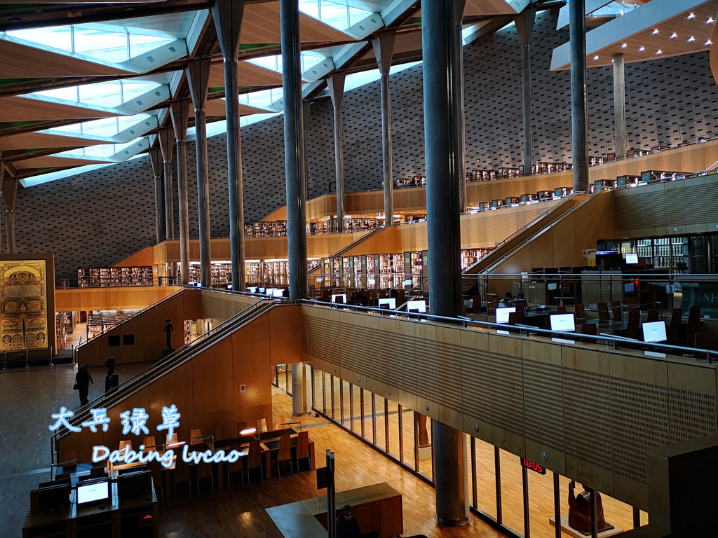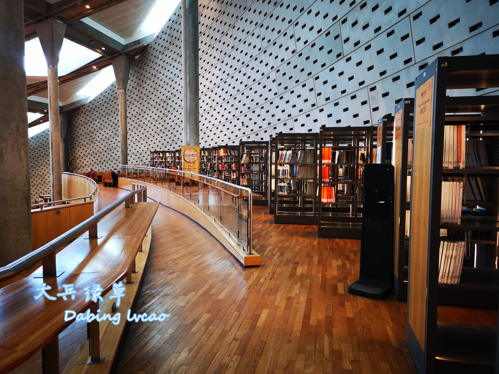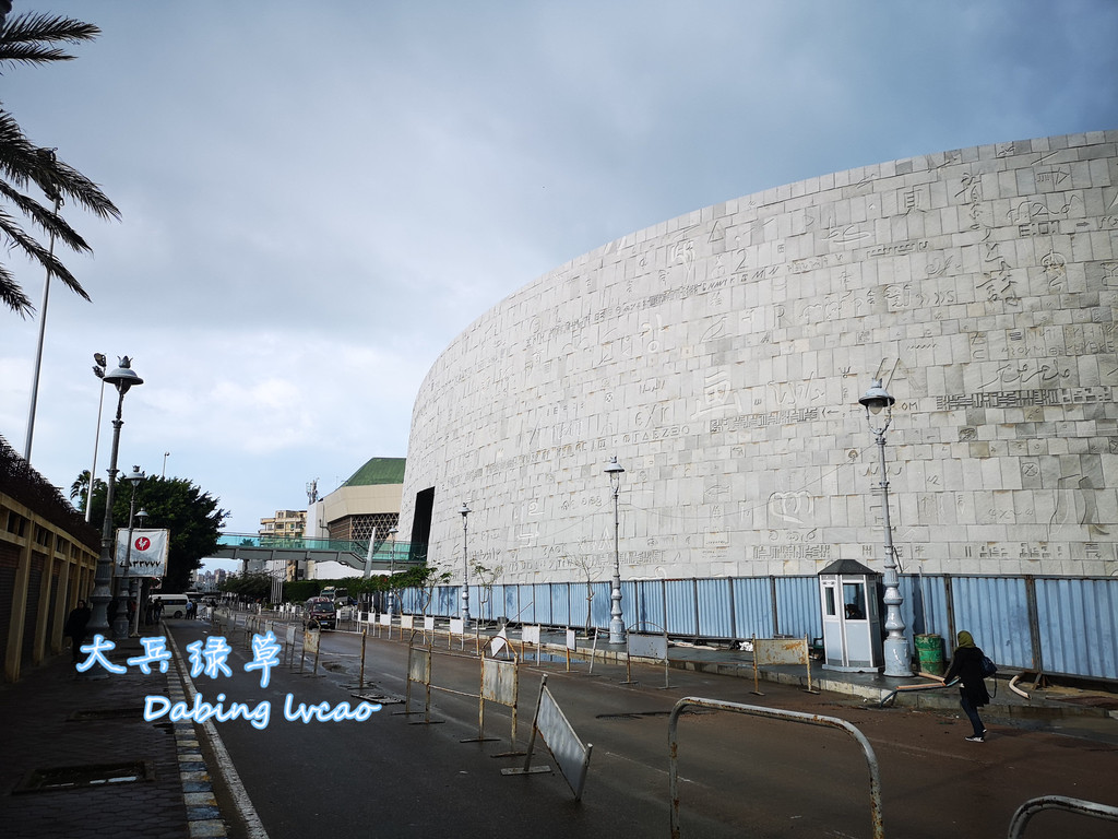 我们参观的亚历山大图书馆是1995年埃及政府在联合国科文组织帮助下重建的,它占地4万平方米,耸立在地中海的海斯尔赛湾畔,据说这里是托勒密王朝时期图书馆的旧址,从海岸线上看,图书馆就像一个直径160米的圆盘状体积,以楔形向前倾斜,顶部是半圆形穹顶,内部的会议厅则呈金字塔形,圆柱、金字塔和穹顶的巧妙结合浑然天成,丰富的几何形状凸显其文明蕴藏与文化氛围的构思和创意。