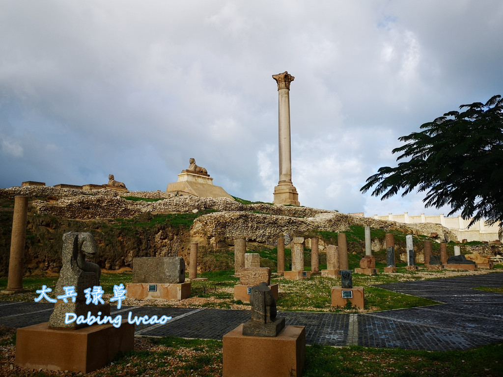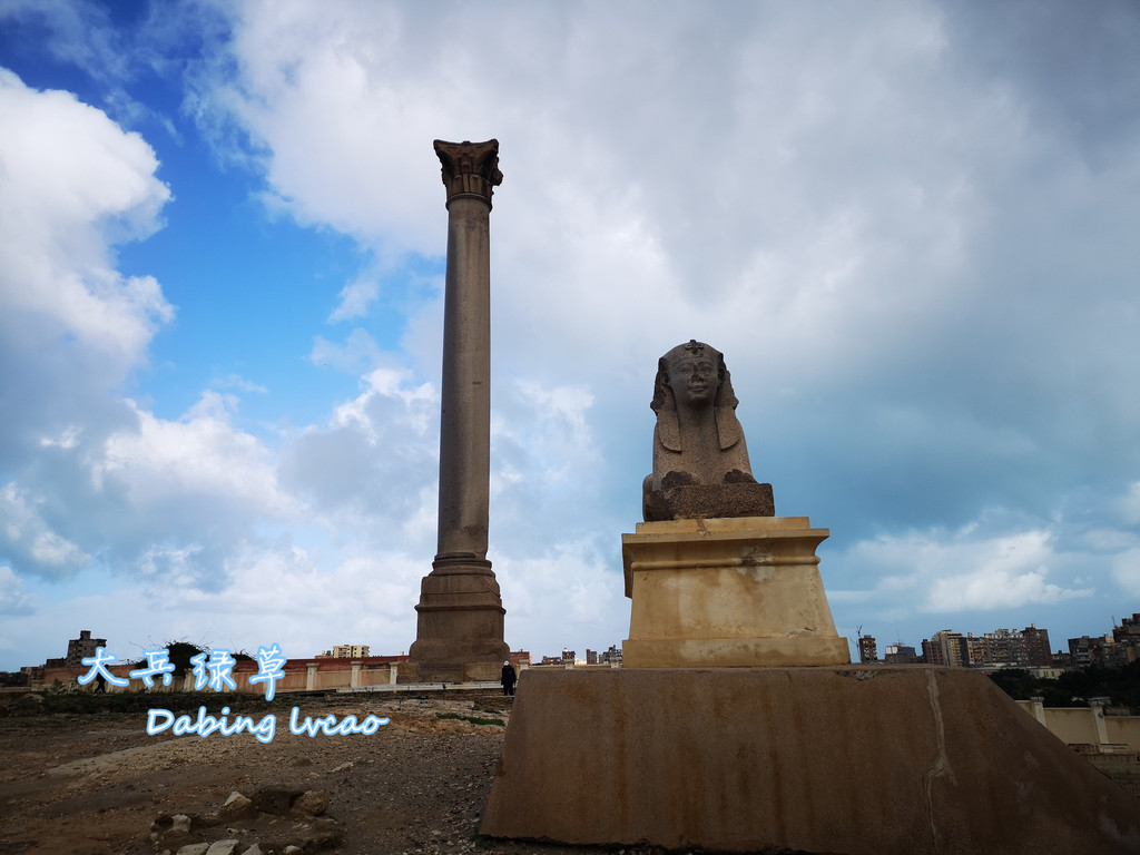 亚历山大市民对萨瓦里石柱(庞贝柱)还是关爱有加,将它作为亚历山大城的城徽,又称它为骑士之柱,给耸立了1600多年石柱赋予新的文化印记。还不知从哪里弄来一座粉红花岗岩狮身人面像与它为伴。