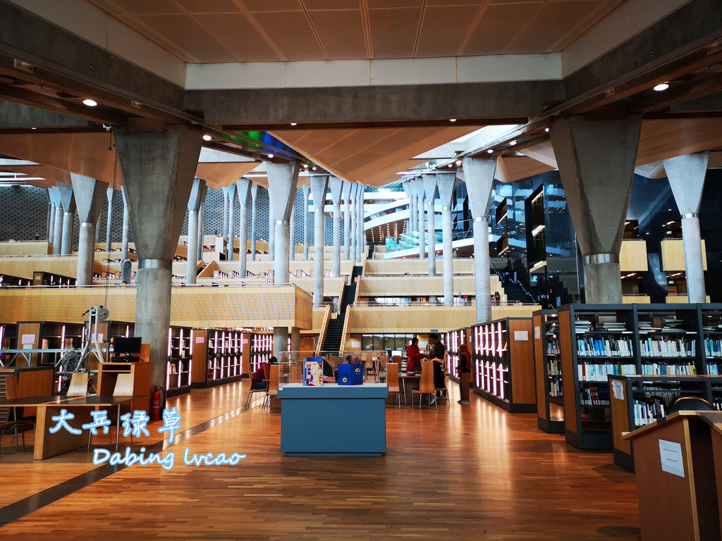 图书馆内部采用曲线与平面相交的布局使其空间充满了活力,给参观者和阅读者带来开敞空旷的视觉效果。