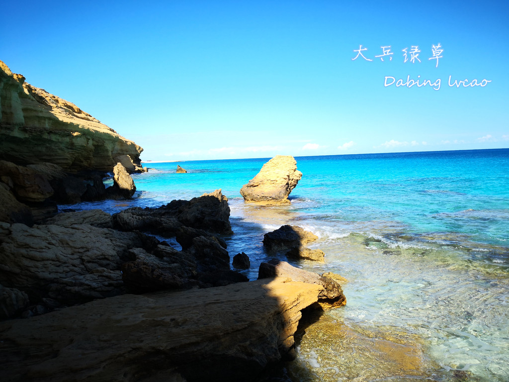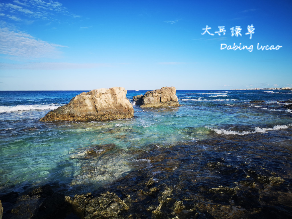 在爱情海滩的北侧海面上,耸立着一些巨大的礁石,这些礁石或昂首挺胸屹立在海中,或匍匐在岸边,任凭风浪的冲击拍打,没有丝毫退缩让步。在这些礁石的西侧,有一些人工构筑物的遗址,有的像是水池,有的像是引水渠,这会是克利奥帕特拉(埃及艳后)时代留下来的吗?