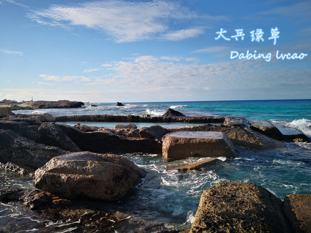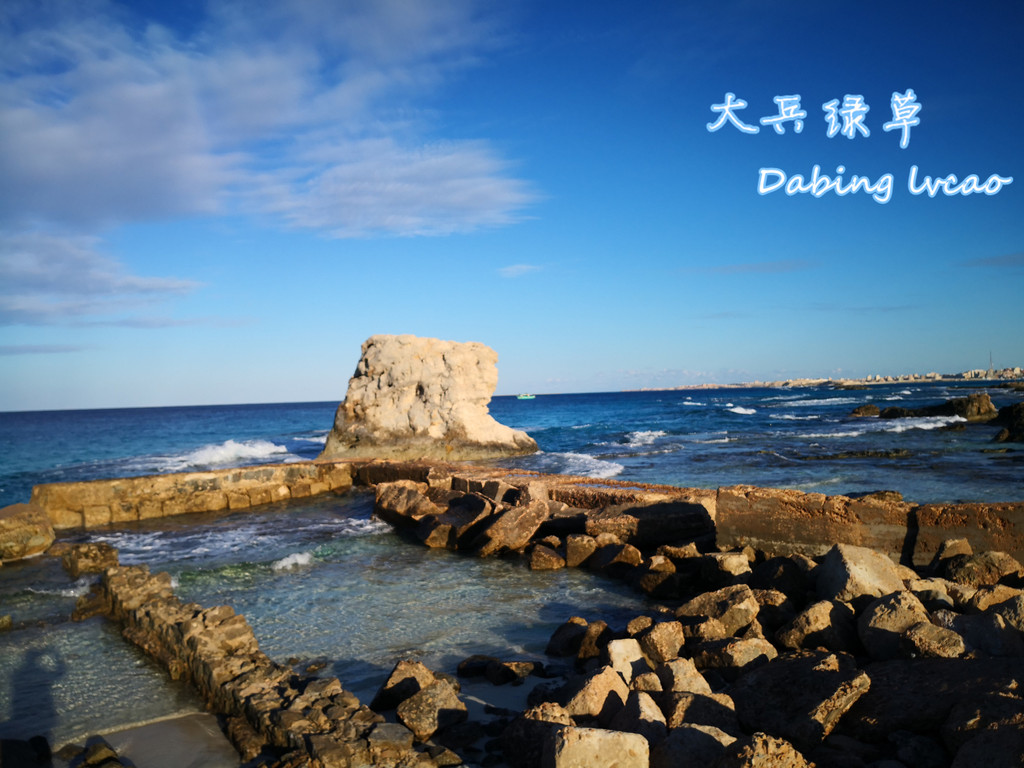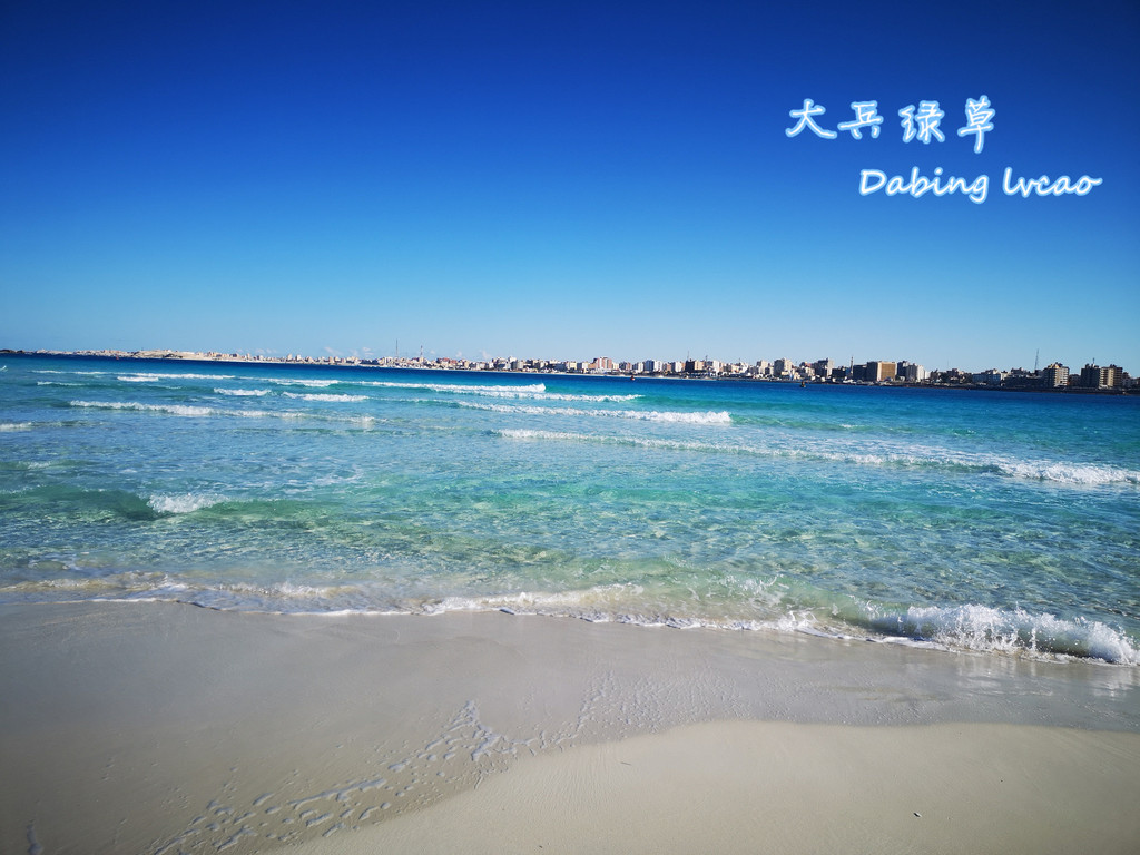 我们按照导航的指引、沿着马特鲁市区对面的海滩公路,没有找到克利奥帕特拉海滩(Cleopatra Beach),却误打误撞地来到了格拉姆海滩(Gharam Beach),这里又称爱情海滩(Lover Beach),也许是我们到达的时间不对,海滩上没有看见情侣们的身影,倒是地中海的海浪,一浪又一浪,不知疲倦地拍打着白色的沙滩。