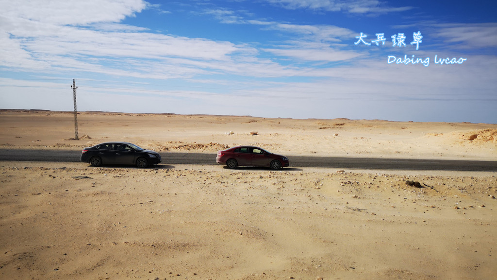 由马特鲁前往锡瓦绿洲,要经过一段沙漠路段,这里属于撒哈拉大沙漠的一部分,撒哈拉沙漠是世界上最大的沙漠,它横贯非洲大陆北部,东西长达5600公里,南北宽约1600公里,面积约960万平方公里,都与我们国家的国土面积一样大了。不过在撒哈拉沙漠里行车好像没有我们在新疆塔克拉玛干沙漠公路行车时那么大的风沙,也看不到连绵不断的沙丘。但是在公路边看见了骆驼,也算是撒哈拉特有的景色吧。