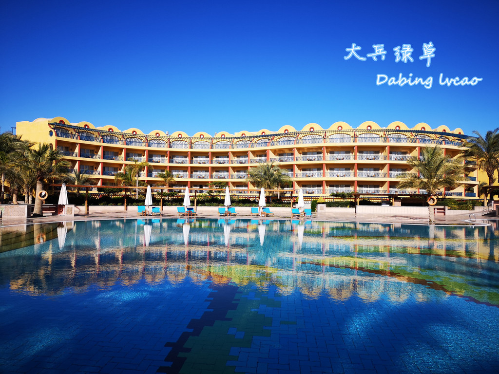 我们12月28日在马特鲁入住的是凯瑞斯堡瑞文之美楚酒店( Carols Beau Rivage Matrouh),这是一家四星级度假酒店,位于马特鲁市区西面近20公里的地中海畔,占据了好几百米的白色沙滩和一个小海湾,景色十分宜人。
