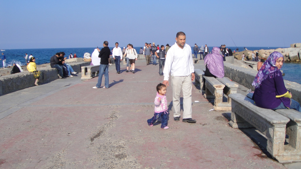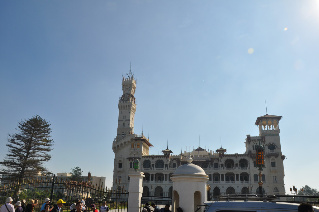 我们今天的第一站是蒙塔扎皇宫花园,此园1952年前一直是皇室家族的消夏避暑地,现海滨向游人和垂钓者开放。园内有国王行宫(现为埃及国宾馆)。我们在皇宫外的海边游玩,拍照留念。