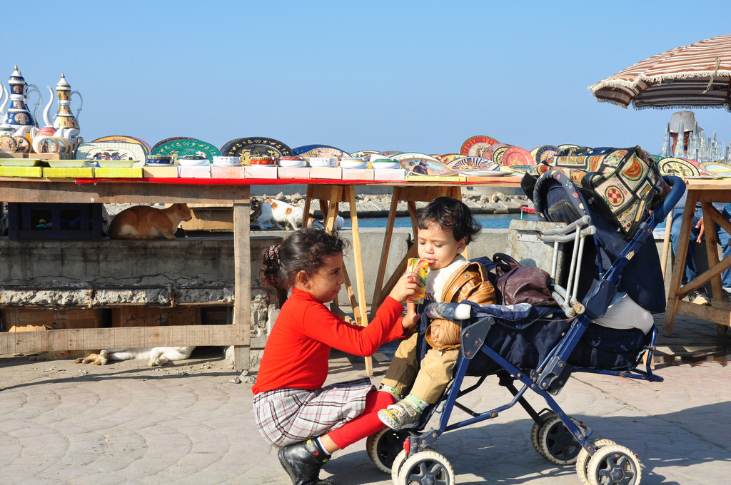 一天的参观,逐渐的对埃及古老的文明和现代的城市建设有了些许的认识,他们还依然处于国家贫穷的境地,最为显著的特征是当地人看到中国游客就会从嘴里蹦出几个字“万金油、圆珠笔”。那怕是高大帅气的男人,也会走到我们面前伸出手说:万金油、圆珠笔。原来那里气候炎热,蚊虫滋生,中国产的万金油能够很好地缓解中暑和蚊虫叮咬的痛苦。而圆珠笔这样方便快捷的书写工具都是当地人梦寐以求的奢侈品。而埃及的许多洗手间是需要收费的,尽管非常脏。但是在那里你只需要给一盒万金油,就可以顺利进入。万金油就相当于支付了进入洗手间的费用,因此许多国人去时,都要带许多万金油,当小费支付。
