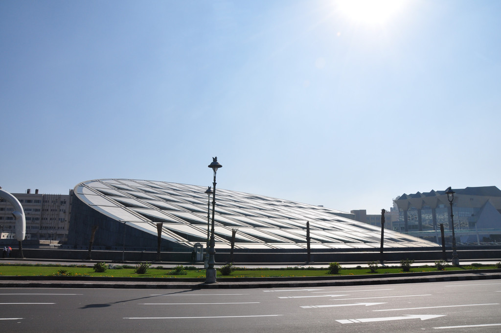 离开皇家花园后,我们来到亚历山大图书馆,这个建筑在开罗是非常漂亮的,也很现代。我们没有进去,只是在外面参观拍照。
